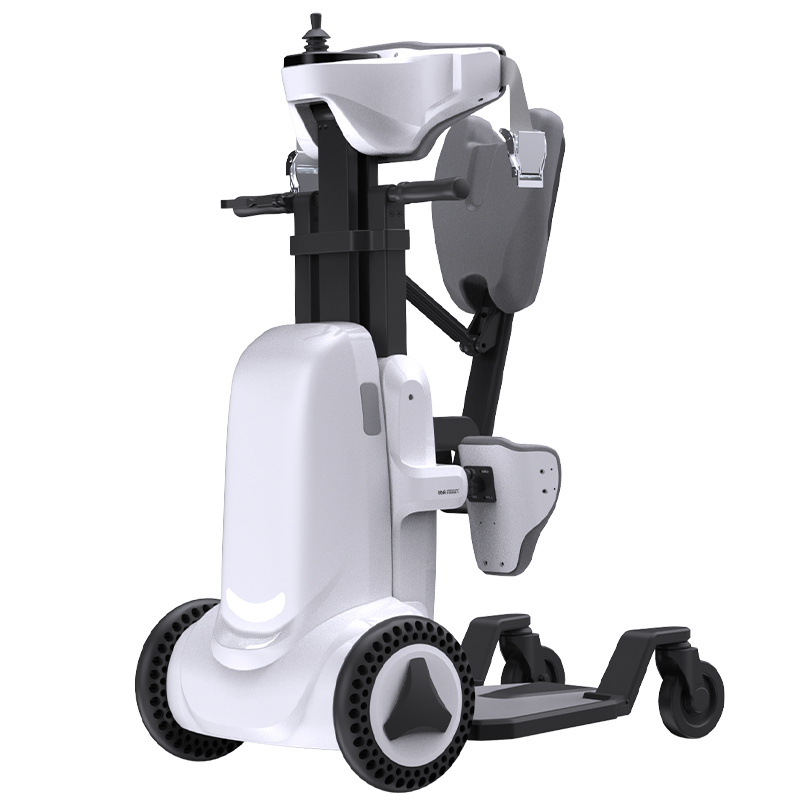 Lower limb walking rehabilitation training equipment adopts integrated ergonomic design, combined with self-developed personalized bionic gait data model, through high-performance actuator and force position hybrid control algorithm to drive the gait mechanical leg, so that the walking training action is softer. The device supports one-click automatic leg length matching to shorten the preparation time. Provide passive, assisted, active and other training modes, which can not only realize early rehabilitation intervention, provide users with correct movement mode input, induce active movement; At the same time, it can also provide balance, coordination, muscle strength and other functional strengthening training programs for users in the middle and later stages of rehabilitation to meet the rehabilitation needs of users in different functional stages.