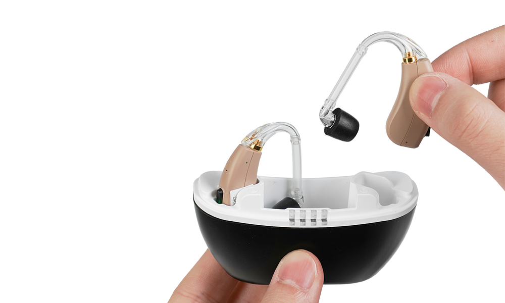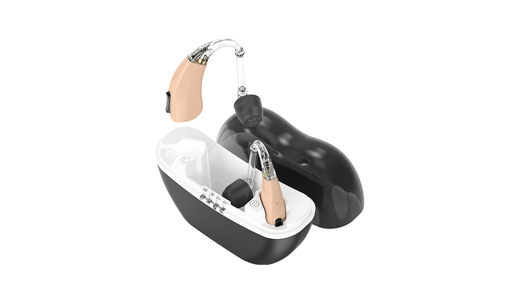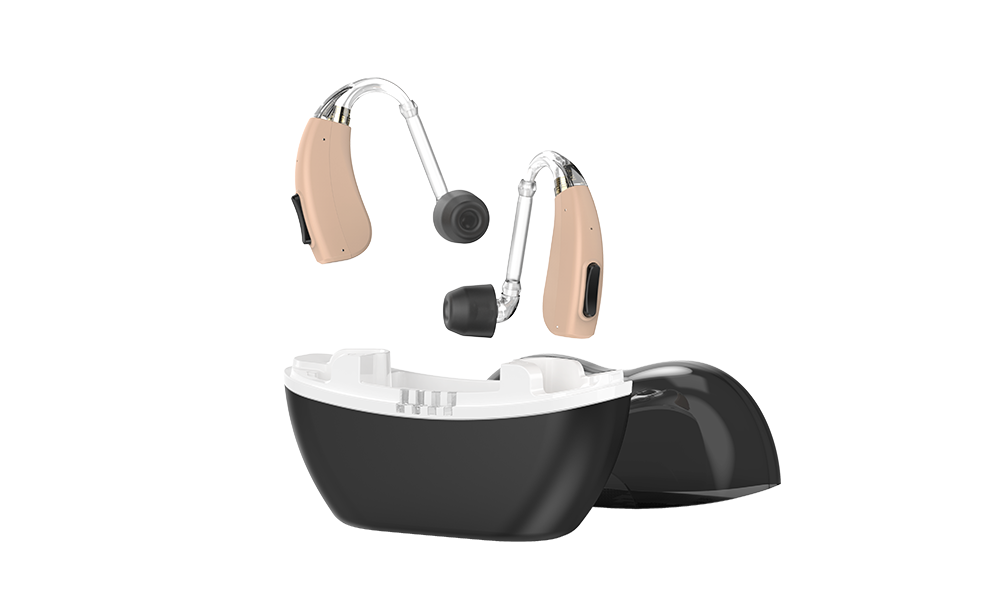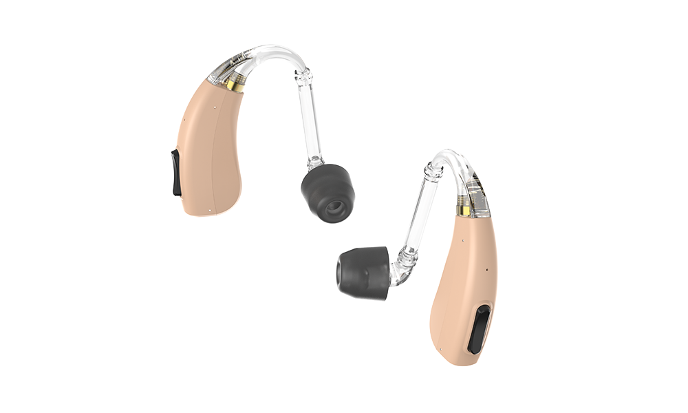 High power design, suitable for users with severe hearing loss Integrated design of thin acoustic tube and high-power ear hook Switching between 4 listening programs