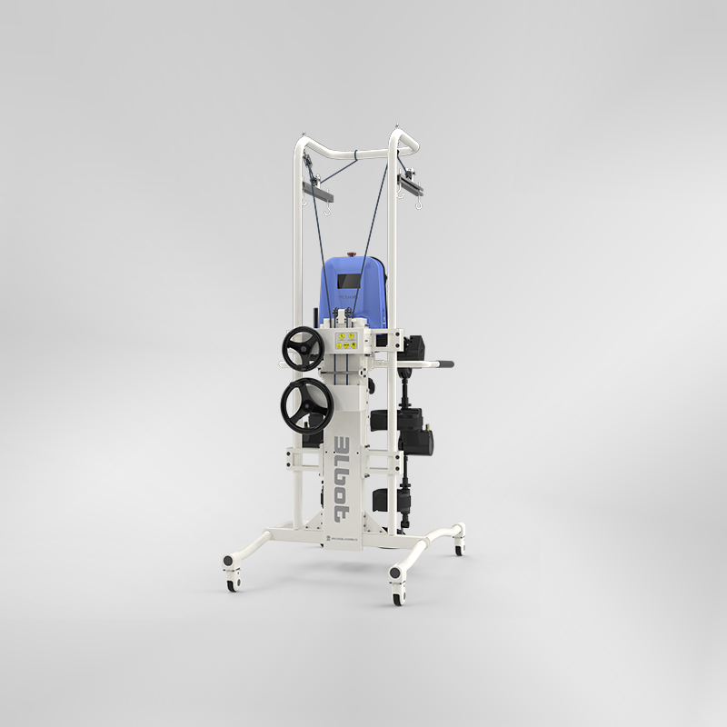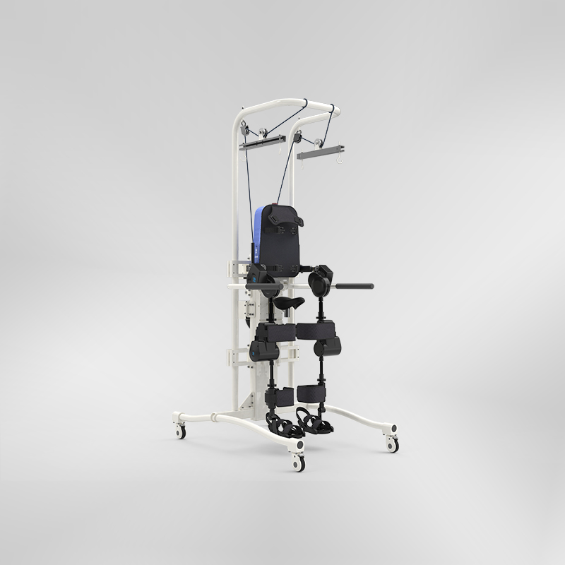 Mainly for stroke hemiplegic patients and orthopedic postoperative patients, lower limb rehabilitation training is provided. The product first adopts a simulated human upright state for lower limb rehabilitation training, changing the traditional bed rest artificial rehabilitation in the early stage; The overall model adopts artificial intelligence and passive rehabilitation training. The left and right legs, hip joints, and knee joints of the entire device can be set separately according to the patient's situation. The stride frequency and rehabilitation training time can be set according to the doctor's guidance, and the rehabilitation data can be recorded and transmitted to the doctor from the background for better guidance on rehabilitation training or research. In addition, the overall lifting and weight reduction design is adopted to meet the weight bearing requirements of different rehabilitation stages