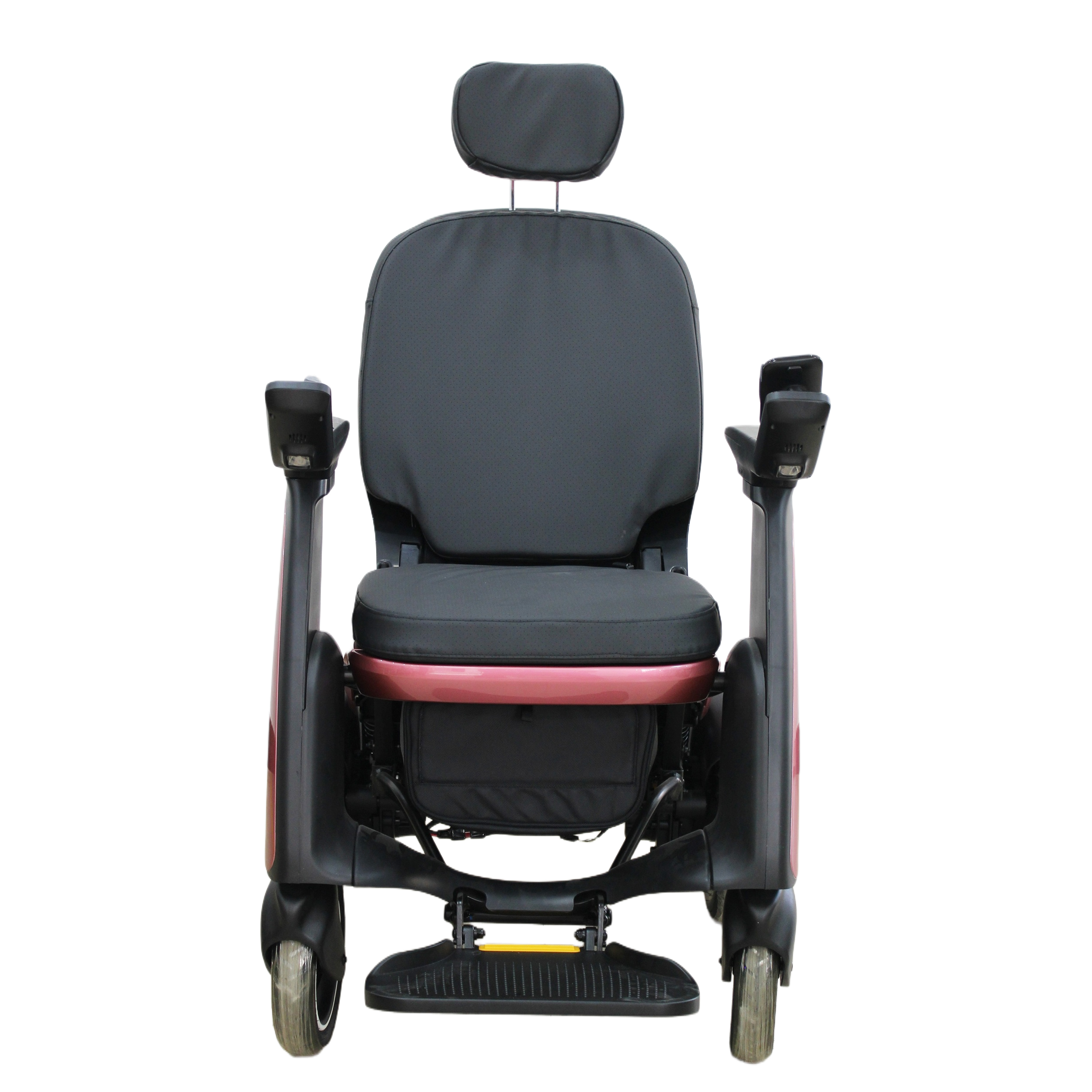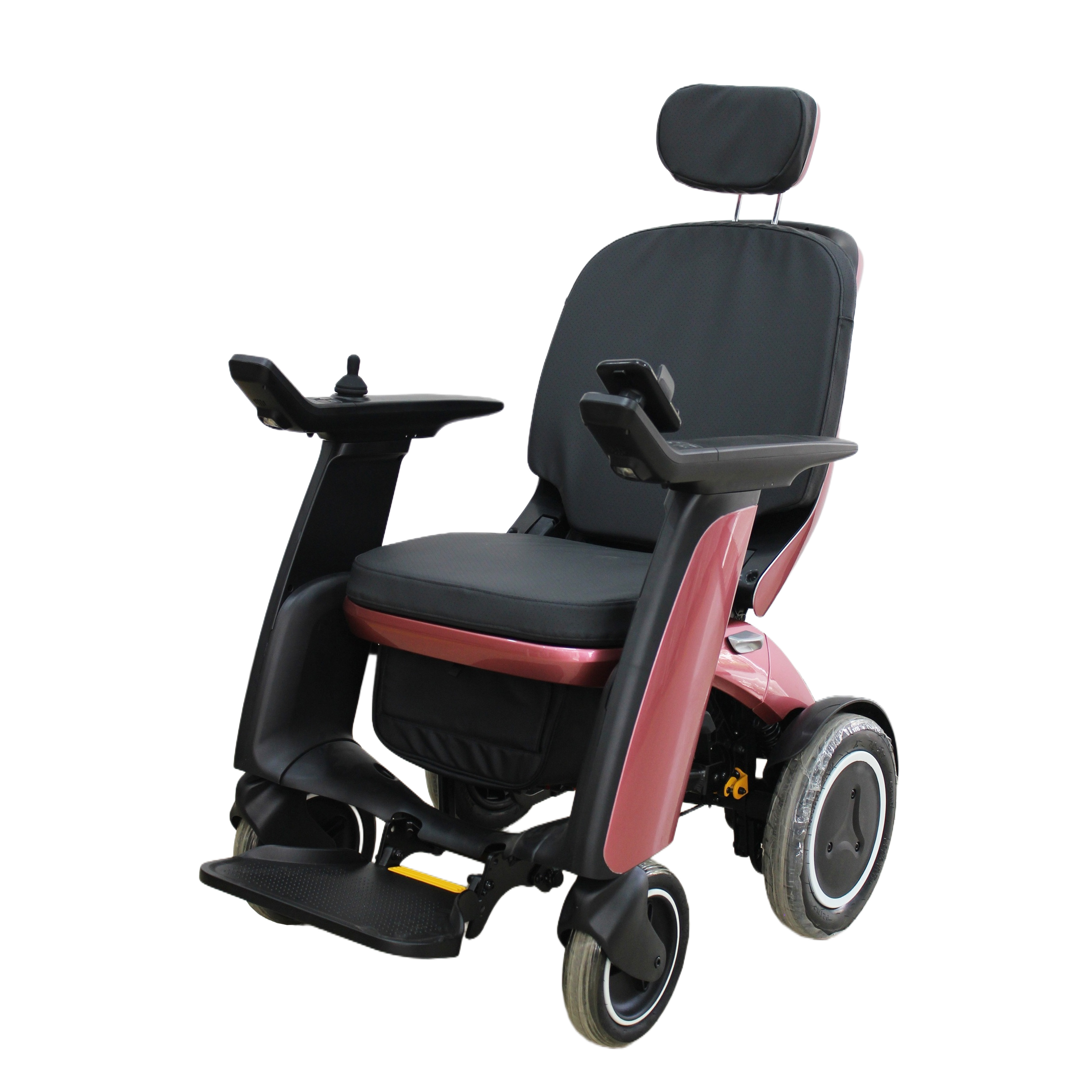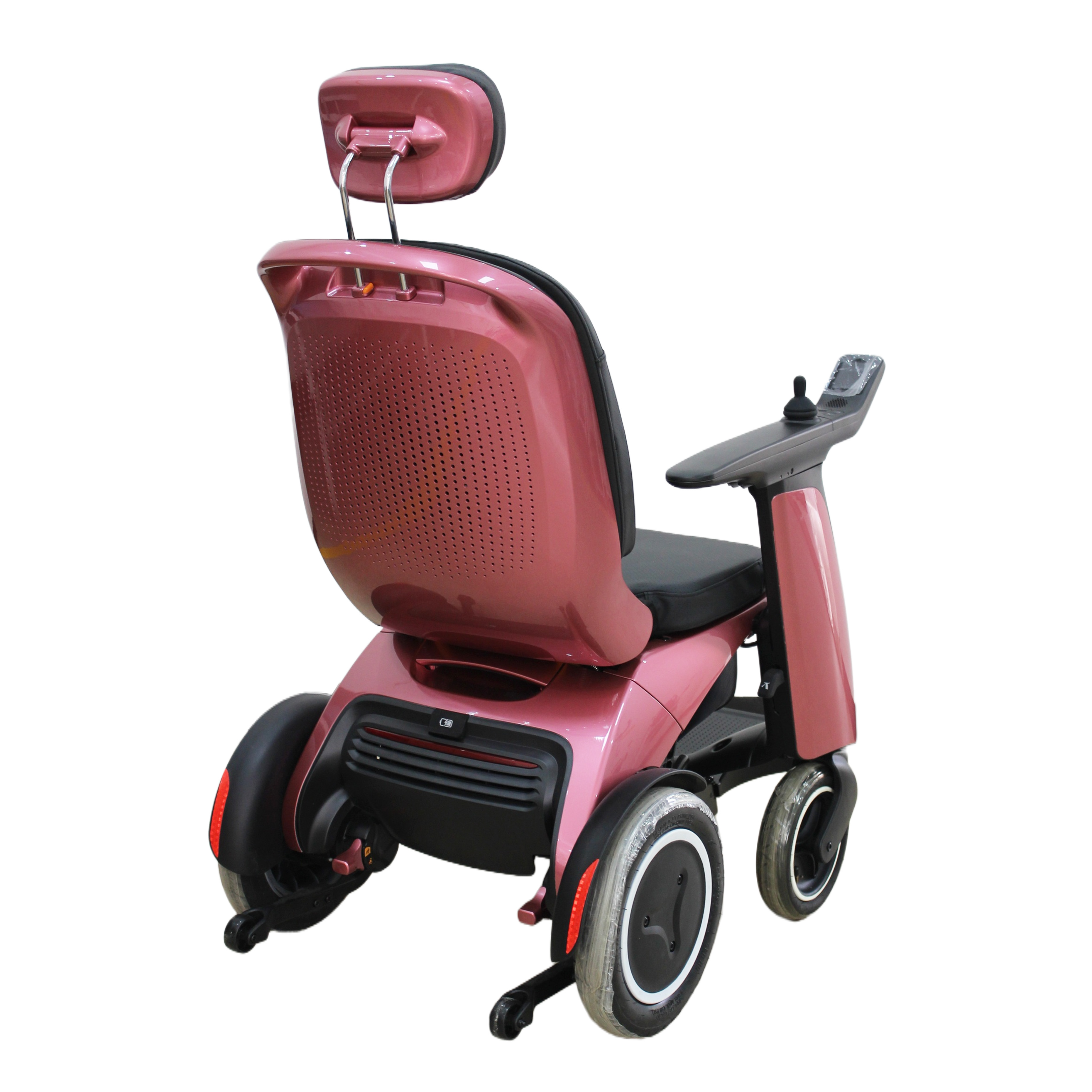 Its main frame is assembled with high-strength die-castings, featuring high strength and light weight, and its surface is coated to resist aging and corrosion. The foldable design saves space and facilitates portability. The seat and back cushions are made of high-strength mesh cloth with built-in canvas reinforcement, achieving a tensile strength of 5000N, which is soft, breathable and anti-slip. It is equipped with 9-inch front wear-resistant inflatable tires with shock absorption and 12.5-inch rear inflatable tires. The rear-flipping armrests allow for easy side access. Powered by a 300W brushless motor paired with an intelligent controller, it supports Bluetooth playback and stops automatically when the hand is released. The detachable footrests are foldable and adjustable. Supporting both manual and electric modes, it is safe and reliable.