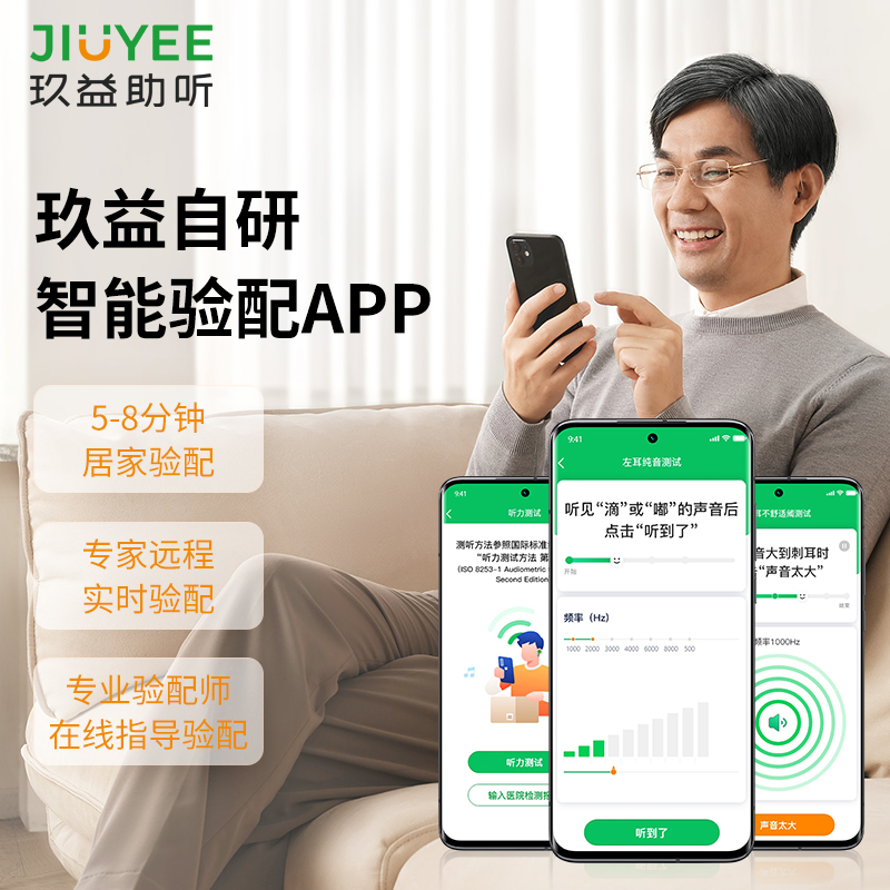 JIUYEE Medical-Grade Smart Bluetooth Behind-the-Ear Hearing Aid (RIC P4 High Power) Designed for moderately severe to partial profound hearing loss. Powered by JIUYEE’s original “Tri-Core System Technology”, it offers 75 dB full-scale gain, a 135 dB maximum sound pressure level, 64-channel WDRC with AI noise reduction technology, and supports at-home hearing test and fitting in just 5–8 minutes. With IP67 water resistance and 140 hours of long battery life, it ensures clear, comfortable communication in everyday life.