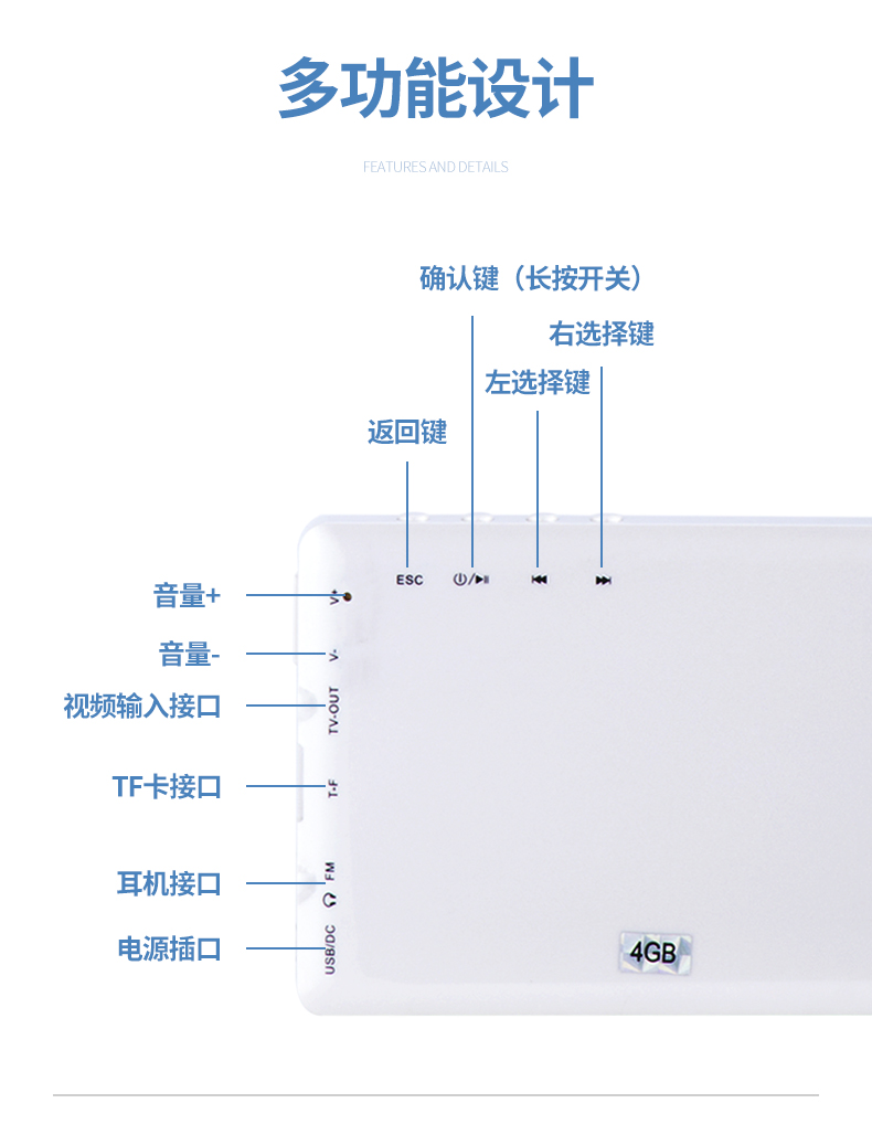 屏幕尺寸≥4.2寸;每一步操作都可以實(shí)現(xiàn)步步語(yǔ)音提示;具有視頻/音頻/收音機(jī)/電子書(shū)功能。