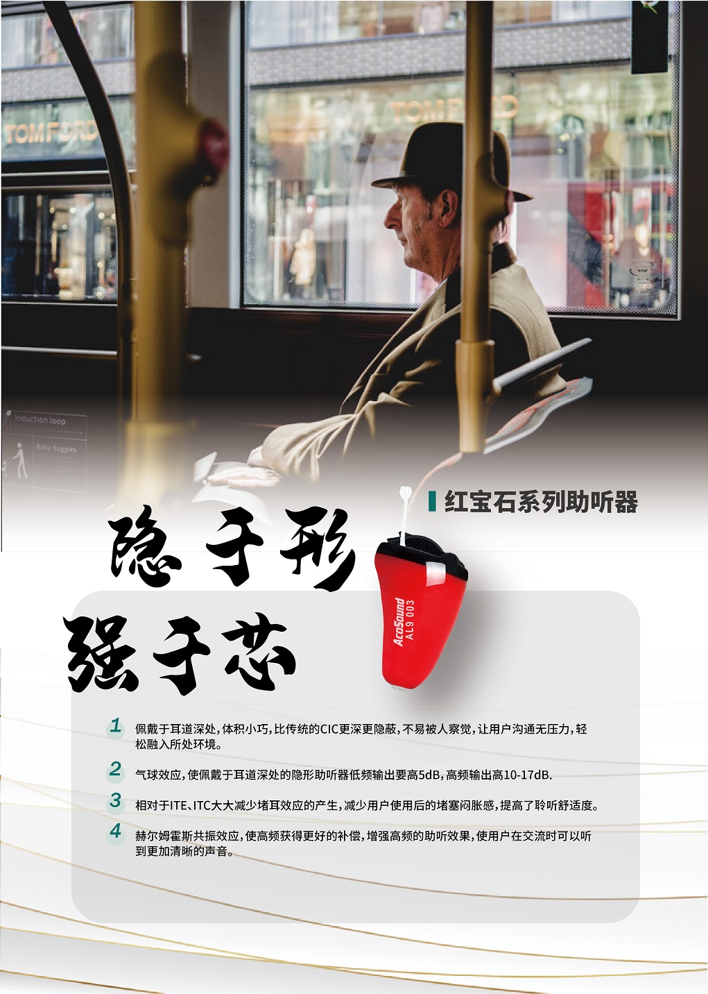 佩戴于耳道深處,體積小巧,比傳統(tǒng)的CIC更深更隱蔽,不易被人察覺,讓用戶溝通無壓力,輕松融入所處環(huán)境。 氣球效應(yīng),使佩戴于耳道深處的隱形助聽器低頻輸出要高5dB,高頻輸出要高10-17dB。 相對于ITE、ITC大大減少堵耳效應(yīng)的產(chǎn)生,減少用戶使用后的堵塞悶脹感,提高了聆聽舒適度。 外殼采用不透明納米陶瓷材料,更堅(jiān)固更具韌性,不易損壞。