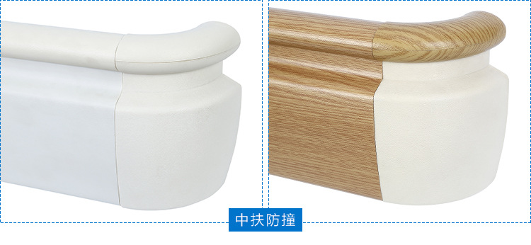 抗菌防撞扶手由抗菌PVC面板、優(yōu)質(zhì)鋁合金內(nèi)襯、彎頭、支撐架等組成;設(shè)計(jì)符合人體力學(xué)的要求,手握時(shí)有舒適感;表面PVC面板采用高分子抗菌材料,有防滑紋路,可抗菌、防污、不易變色,便于清潔,具有抗菌性、阻燃性、耐寒性等特性,產(chǎn)品經(jīng)國(guó)家權(quán)威機(jī)構(gòu)檢驗(yàn)合格;整體色澤均勻,無(wú)明顯色差;扶手內(nèi)襯鋁型材,采用優(yōu)質(zhì)的鋁錠擠出成型,有堅(jiān)固和防撞效果;扶手在每個(gè)轉(zhuǎn)角處有陰陽(yáng)角連接配合,可使扶手的美觀無(wú)縫連接及保護(hù)墻面。