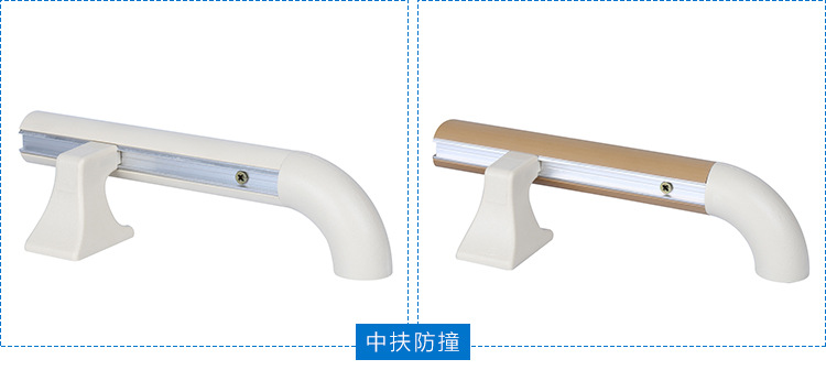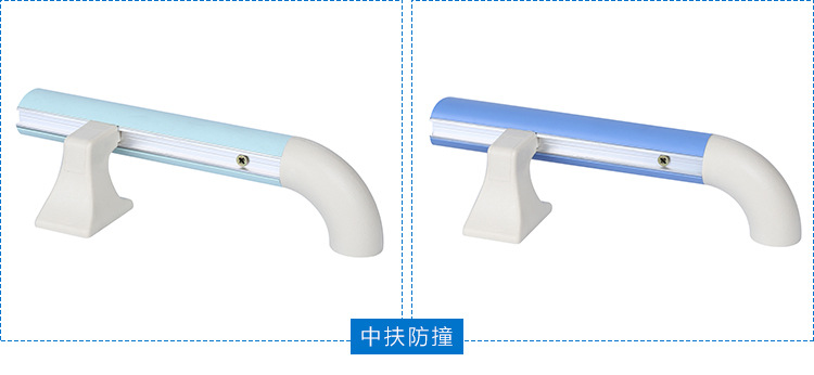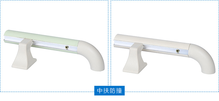 抗菌防撞扶手由抗菌PVC面板、優(yōu)質(zhì)鋁合金內(nèi)襯、彎頭、支撐架等組成;設計符合人體力學的要求,手握時有舒適感;表面PVC面板采用高分子抗菌材料,有防滑紋路,可抗菌、防污、不易變色,便于清潔,具有抗菌性、阻燃性、耐寒性等特性,產(chǎn)品經(jīng)國家權威機構(gòu)檢驗合格;整體色澤均勻,無明顯色差;扶手內(nèi)襯鋁型材,采用優(yōu)質(zhì)的鋁錠擠出成型,有堅固和防撞效果;扶手在每個轉(zhuǎn)角處有陰陽角連接配合,可使扶手的美觀無縫連接及保護墻面。