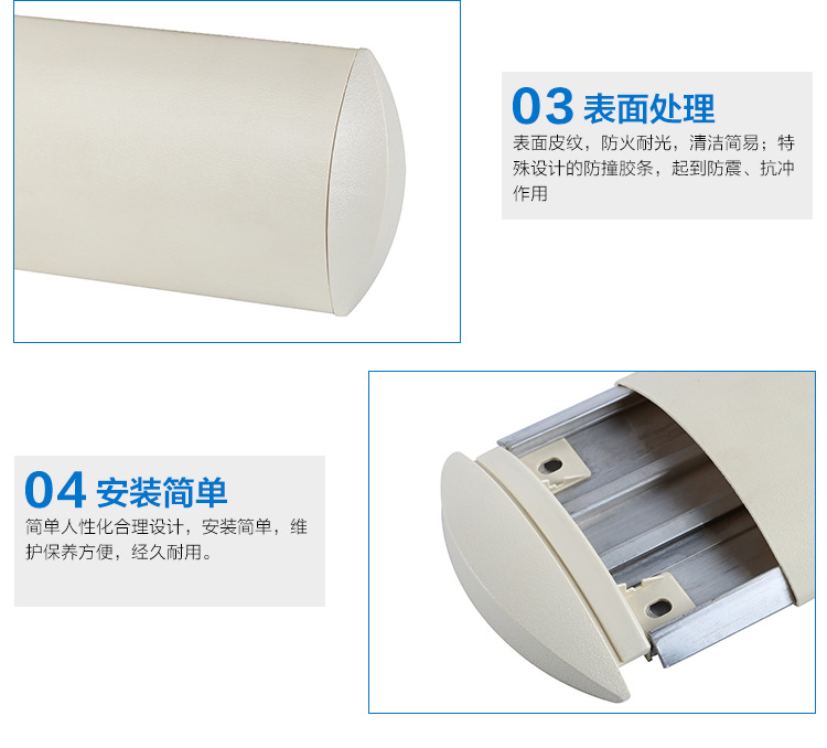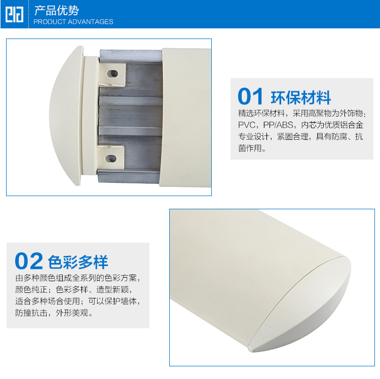 抗菌防撞護(hù)板采用高聚物PVC為外飾物,此PVC有防火、防腐、抗菌、易清潔等效果;安裝簡單,津貼墻面,維護(hù)保養(yǎng)方便,經(jīng)久耐用;3、款式多樣,寬窄均可,色彩豐富;護(hù)板內(nèi)芯為優(yōu)質(zhì)鋁合金專業(yè)設(shè)計(jì),緊固合理;表面批文,防火耐光,清潔簡易;抗菌防撞護(hù)板和抗菌防撞扶手一起使用,整體保護(hù)墻面,防撞、抗擊、抗沖。