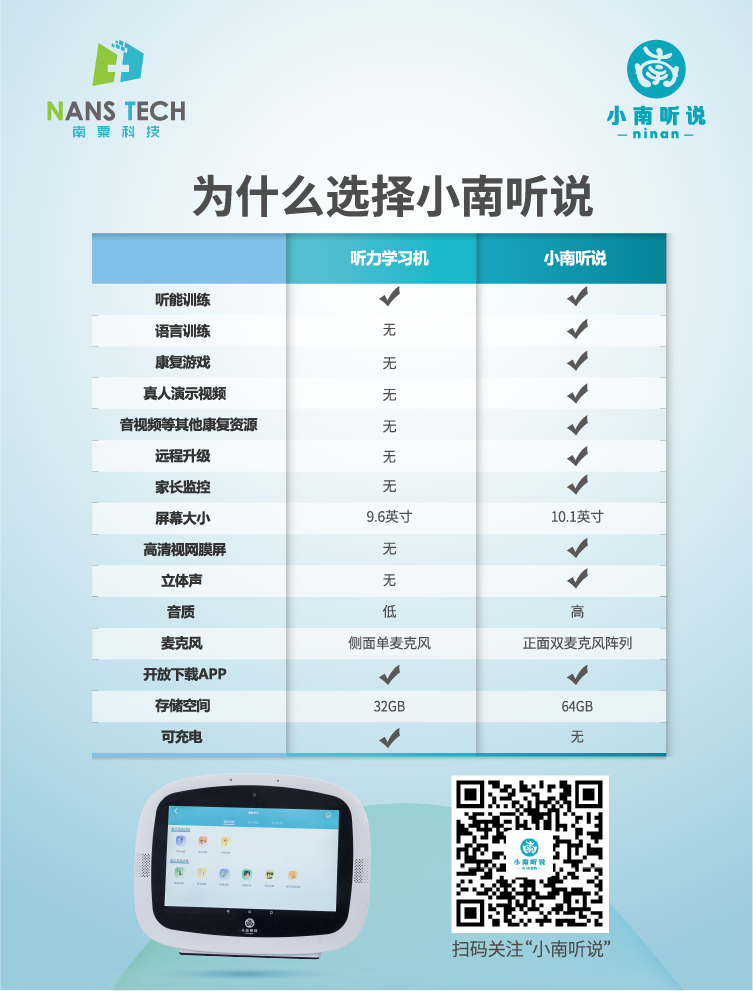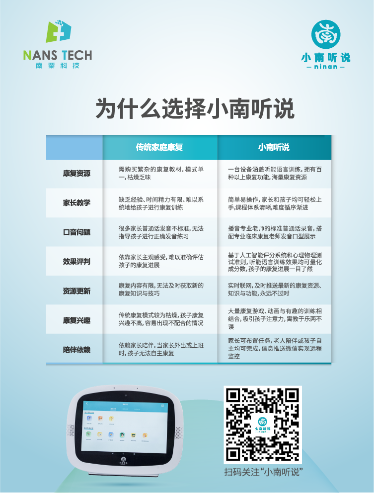 小南聽說聽力語言智能康復(fù)助手是一款基于人工智能和數(shù)字康復(fù)技術(shù)的語言康復(fù)產(chǎn)品,主要面向各類語言、認知及聽力障礙的兒童,由一套智能訓練系統(tǒng)和一套智能硬件設(shè)備組成,目前主要有專業(yè)版和智享版兩種硬件形態(tài),可實現(xiàn)智能化的家庭/機構(gòu)全方位康復(fù)訓練。該產(chǎn)品在上市后獲得數(shù)千萬家長認可,現(xiàn)誠邀各地經(jīng)銷商垂詢合作。