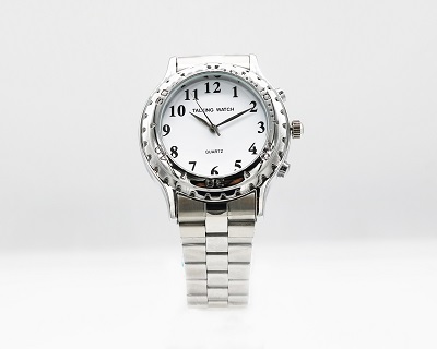 .材質(zhì):1)表殼采用不銹鋼 ;2)表帶采用鋼制;3)表蓋采用石英玻璃。 功能:1)具有語音報時功能,可播報當(dāng)前時間;2)具有整點報時功能;3)具有鬧鈴及貪睡功能。 適用于 一/二級盲和全盲人群。