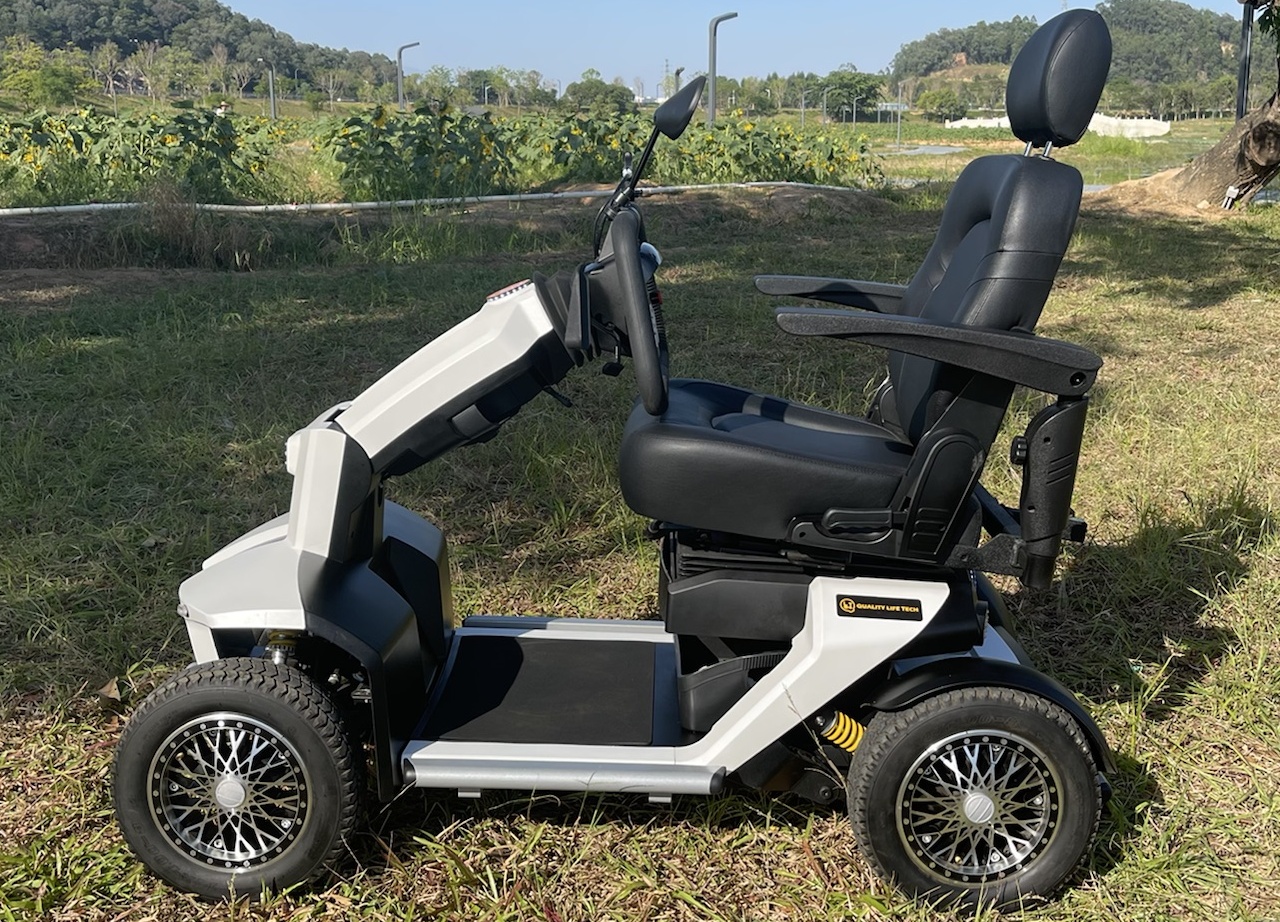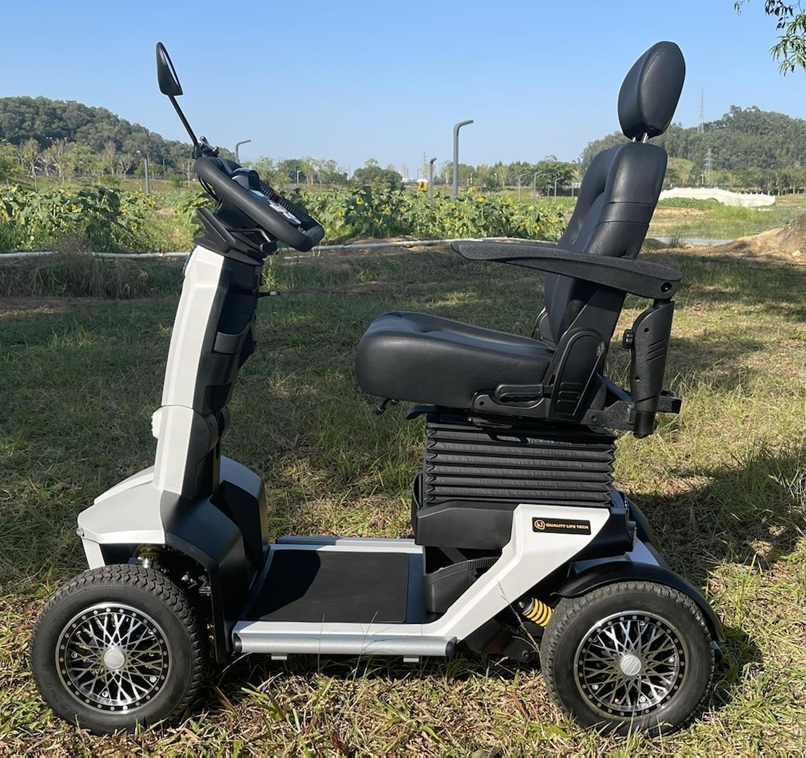 QS1231/QS1245電動(dòng)代步車是全樂電動(dòng)科技根據(jù)國內(nèi)外市場需求和產(chǎn)業(yè)潛在發(fā)展趨勢,結(jié)合市場、研發(fā)部門對(duì)行動(dòng)輔具行業(yè)及老人/殘疾人出行需求的理解,全新設(shè)計(jì)的一系列戶外用全地形電動(dòng)代步車。人體工學(xué)設(shè)計(jì)的T把操作、方向盤調(diào)節(jié)及座椅調(diào)節(jié)模塊和整套豪華日晚間照明燈具,支持長時(shí)間、全地形、日間晚間戶外使用。簡潔時(shí)尚的外型設(shè)計(jì),現(xiàn)代數(shù)碼感外觀,打破傳統(tǒng)電動(dòng)代步車造型局限,給消費(fèi)者帶來耳目一新的使用體驗(yàn)。