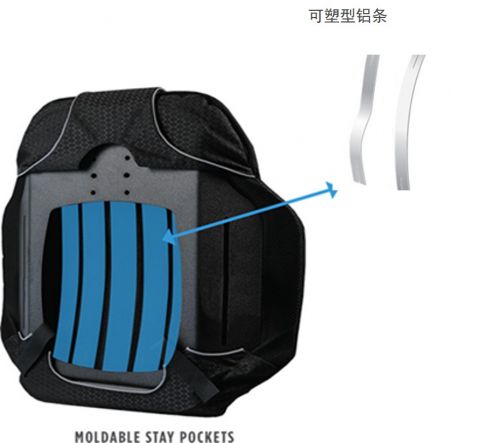 骨架材質(zhì):鋁合金 骨架結(jié)構(gòu):開放式框架(分散濕度熱度,降低重量) 支撐位置:軀干中段,支撐深度約2.5“ 特點:可塑型鋁條 每個靠背有兩根鋁條、五個插槽 可以將鋁條按照其需求放在其中最有利于客戶姿勢的位置 鋁條能夠單獨個別的進(jìn)行彎曲塑性,這樣它們就可以圍繞脊柱后凸的頂點彎曲、圍繞肋骨隆起凸出的部分,或填補嚴(yán)重的脊柱側(cè)彎處