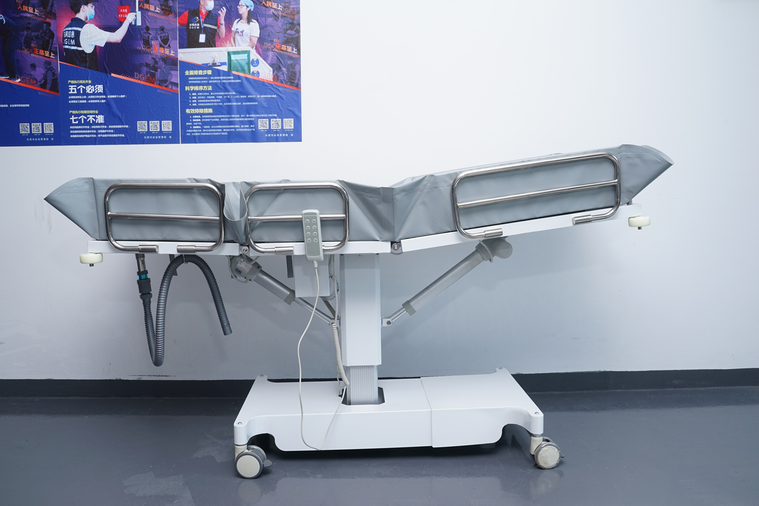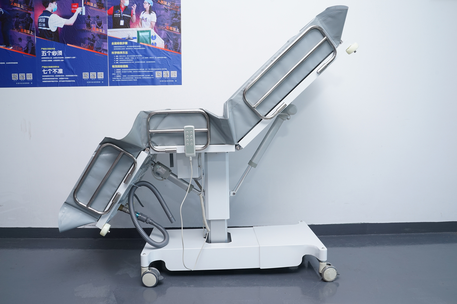 床體電動三折折疊,電動整體獨(dú)立升降調(diào)節(jié),靠背、腿部各自獨(dú)立電動調(diào)節(jié) 可攤開可收縮折疊行走,便于狹小走廊行走及狹小空間洗浴等 電機(jī)功率3*6000-8000N,全部鋰電池24V安全電壓供電,防護(hù)等級:IP54。 配備舒適安全帶,保護(hù)在洗浴及轉(zhuǎn)運(yùn)是浴者安全。 靠背、腿部可根據(jù)浴者舒適度隨意0°--80°調(diào)節(jié)。 護(hù)工操作簡單,調(diào)節(jié)到浴者舒適體位。 框 架:冷板、冷管;