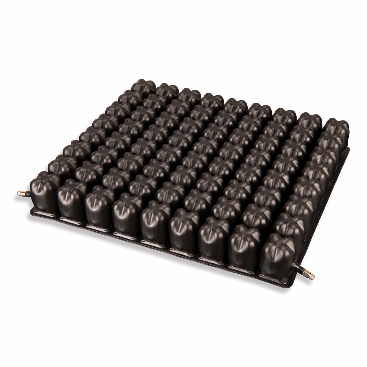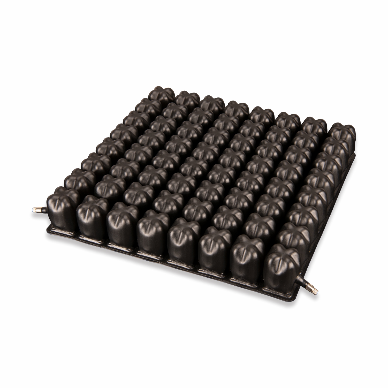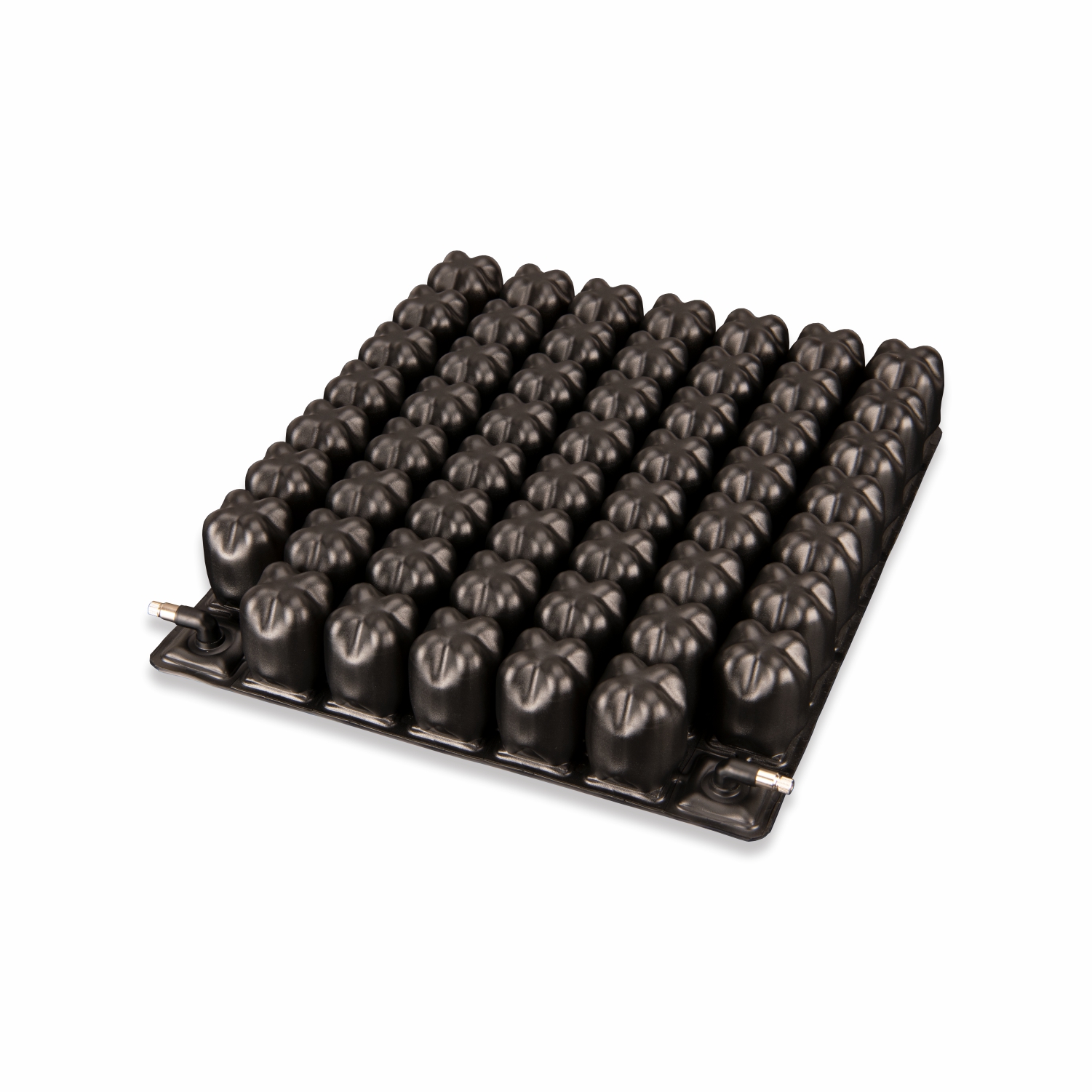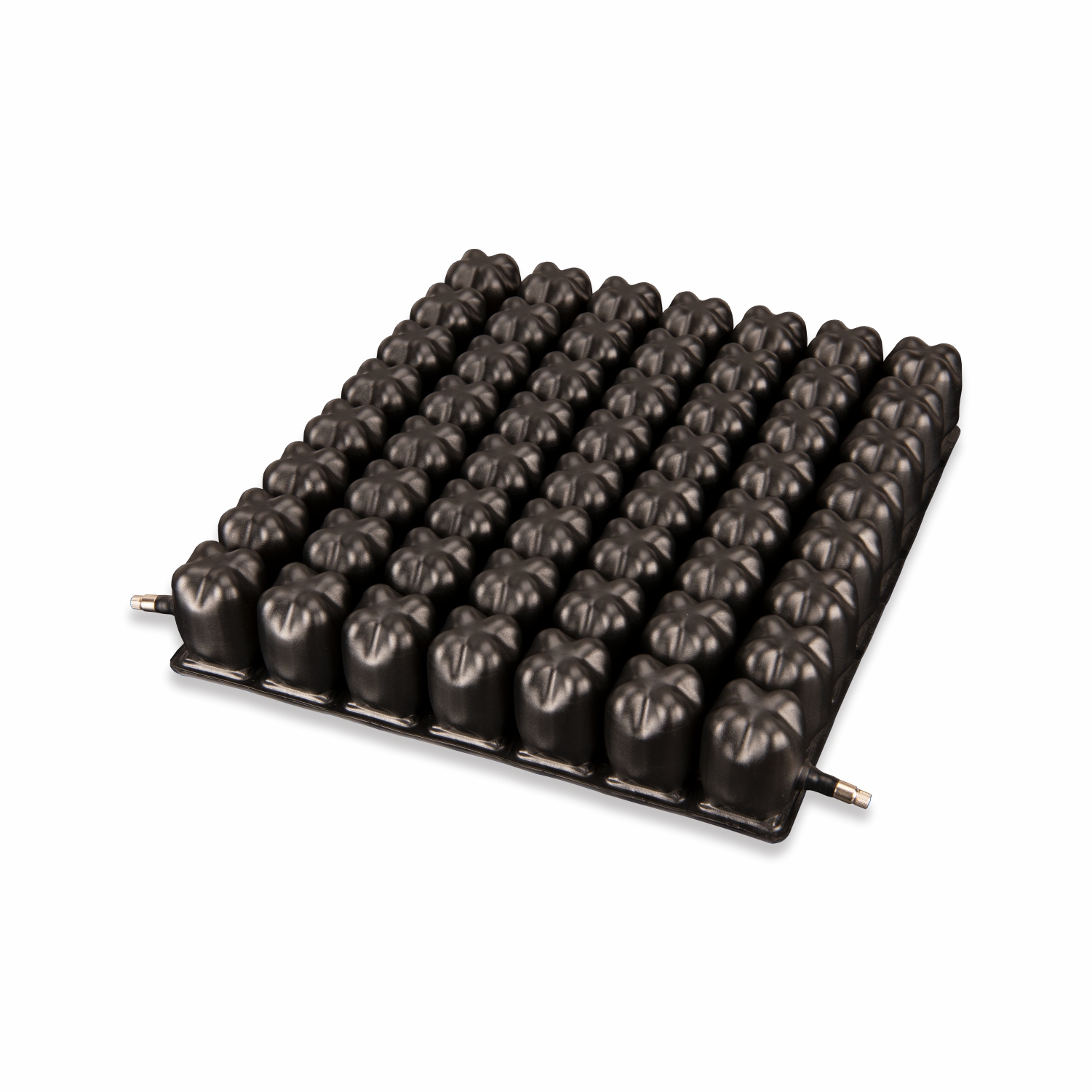 充氣坐墊采用環(huán)保PVC氣囊,內(nèi)置獨立氣囊,氣囊相互連通,易充氣和調(diào)節(jié),依據(jù)空氣流通卸壓原理,能有效預防壓瘡。左、右獨立氣室的雙氣嘴設置,不同的截癱患者左右臀部肌肉收縮程度的高低不同,可通過左、右氣嘴調(diào)節(jié)左、右獨立氣室內(nèi)的空氣量,使截癱患者得到最佳的舒適度及減壓平衡效果。坐墊套面層采用透氣滌綸面料,底部PVC防滑革,拉鏈設置易于清洗。多種尺寸、高度,適合不同輪椅使用者的需求。