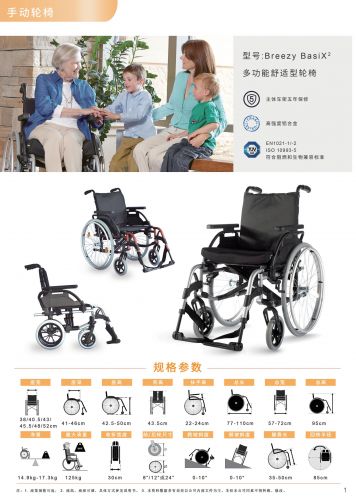Basix2 是一款多功能舒適型輪椅,車架采用高強(qiáng)度航空級(jí)別鋁合金材質(zhì),重心、座高等多項(xiàng)可調(diào),同時(shí)可選配多種配件增加舒適度,其座背墊采用阻燃面料,符合國際生物相容ISO 10993-5標(biāo)準(zhǔn),面料和內(nèi)層海綿防火,符合EN1021-1/-2標(biāo)準(zhǔn)。