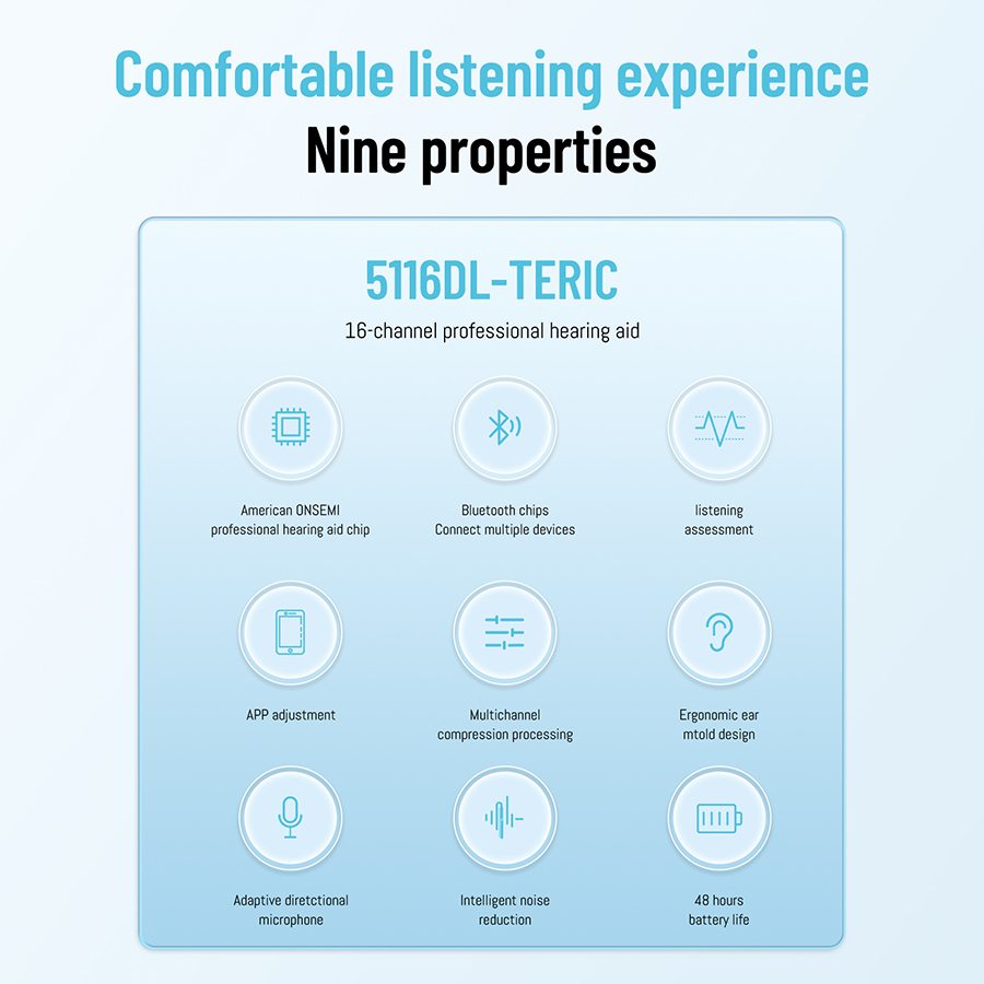 這款助聽(tīng)器是數(shù)字16通道、EQ32通道RIC風(fēng)格,適用于中重度聽(tīng)力損失人群。