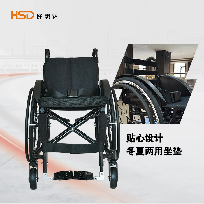 整車鋁合金車架,工字鋼直徑=25mm,壁厚=2.5mm;腳踏板可翻起;坐寬38,40,43可選;后輪24寸氣胎,能有效減震,使用舒適。通過按壓輪圈中間按鈕,可輕松拆卸輪胎,方便外出攜帶;車架可快速折疊,占用空間小。特設(shè)加強(qiáng)型低位護(hù)板,給上肢更大的活動(dòng)空間,方便上下輪椅。坐墊采用加厚海綿,透氣網(wǎng)格布料,讓乘客舒適、安心。