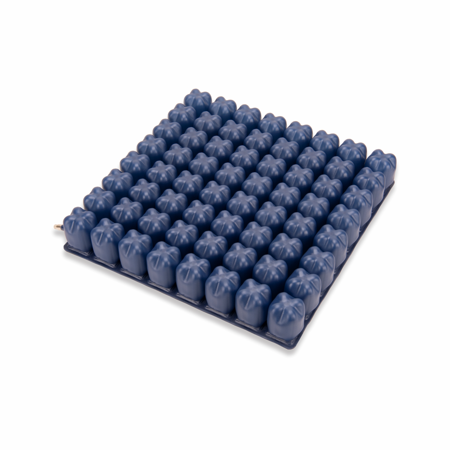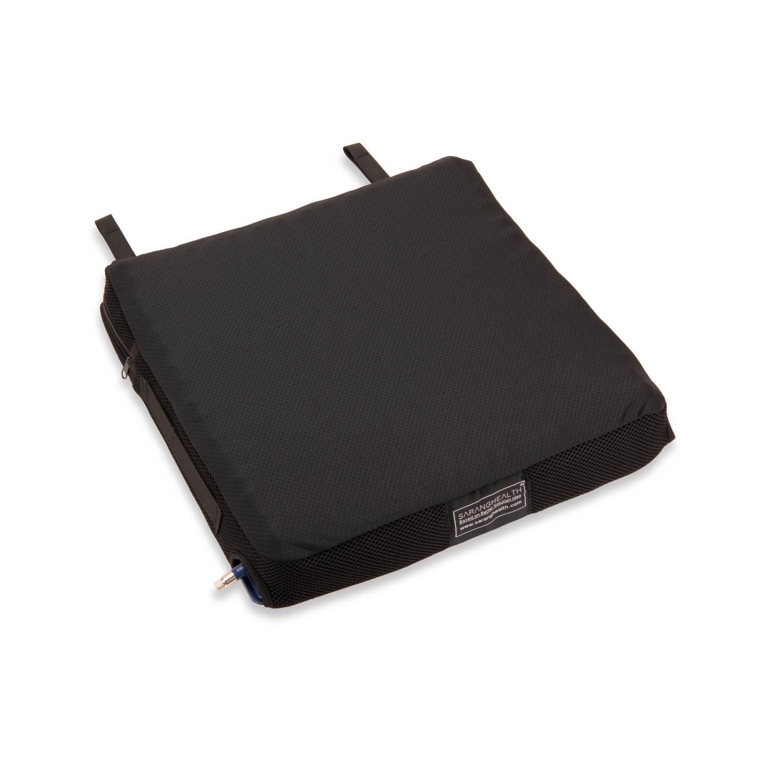充氣坐墊采用環(huán)保PVC氣囊,內(nèi)置獨立氣囊,氣囊相互連通,易充氣和調(diào)節(jié),依據(jù)空氣流通卸壓原理,能有效預防壓瘡。左、右獨立氣室的雙氣嘴設置,不同的截癱患者左右臀部肌肉收縮程度的高低不同,可通過左、右氣嘴調(diào)節(jié)左、右獨立氣室內(nèi)的空氣量,使截癱患者得到最佳的舒適度及減壓平衡效果。坐墊套面層采用透氣滌綸面料,底部PVC防滑革,拉鏈設置易于清洗。多種尺寸、高度,適合不同輪椅使用者的需求。