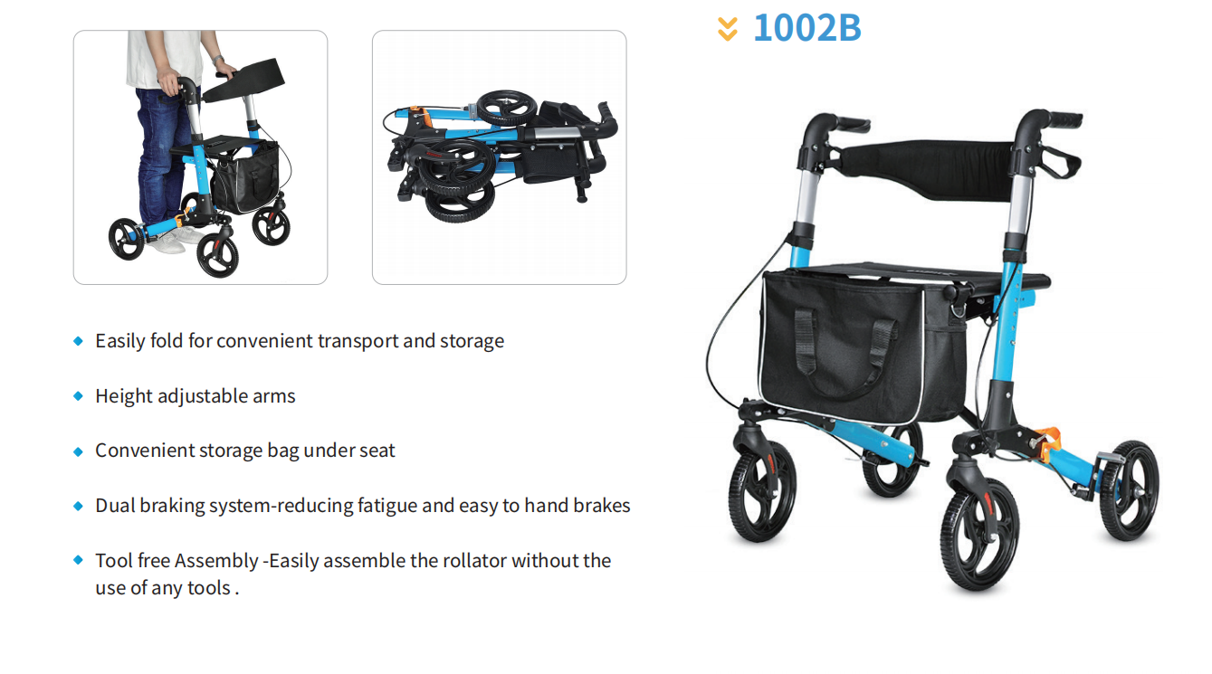 車身可折疊,拿取出行更方便 帶軟墊座椅,可隨時(shí)坐下休息 免工具可拆卸靠背 配有購(gòu)物袋,出行購(gòu)物更實(shí)用 有駐剎功能,使用安全放心 高度可調(diào)節(jié),可按身高調(diào)節(jié)