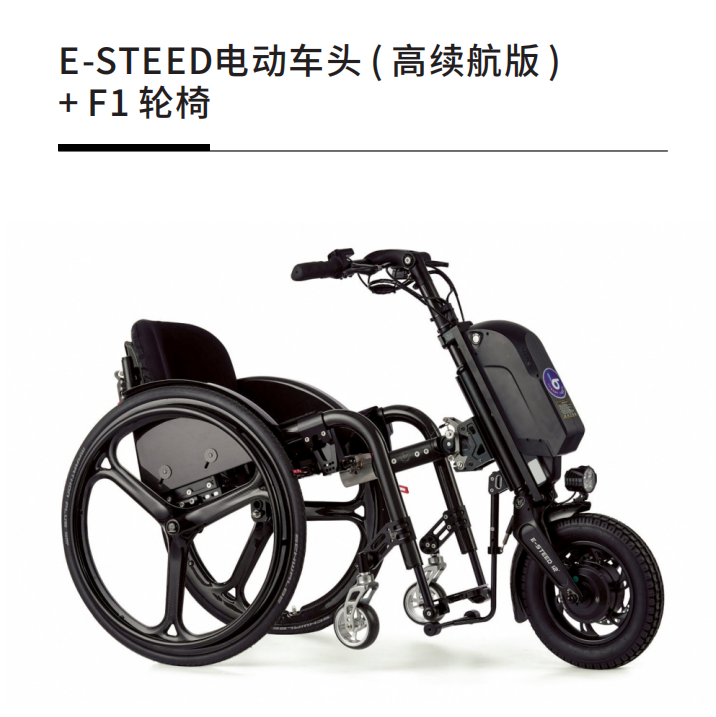 E-steed電動(dòng)handbike,可以和手動(dòng)輪椅配套構(gòu)成一種新式的電動(dòng)輪椅,既有手動(dòng)輪椅的靈活性,又具備了接近電動(dòng)自行車的行駛速度和通過(guò)能力,很好的提升使用體驗(yàn)和出行效率。 E-steed最快速度25KM/H, 最大續(xù)航里程60公里,具備倒擋,集成前照明燈和警示喇叭。 BRAXEN BAGGIO首創(chuàng)的中置式鏈接提供穩(wěn)定可靠的使用感受,可以無(wú)損拆裝,對(duì)輪椅車架沒(méi)有負(fù)面影響。