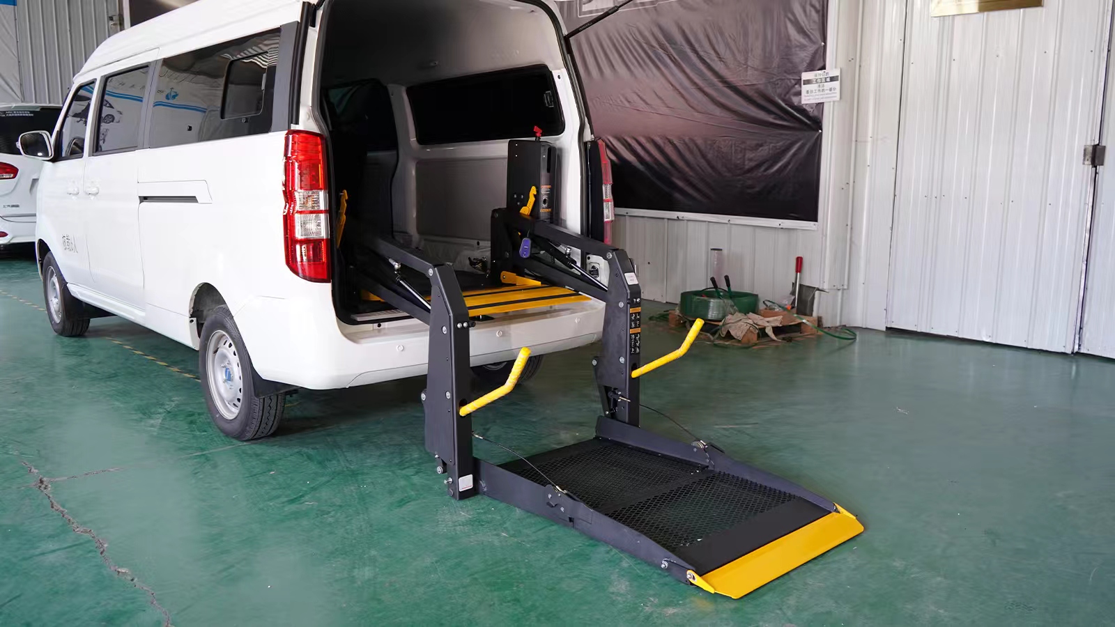 專為特殊人群提供的以商務(wù)車型為載體的福祉車,搭載的輪椅升降機可以讓行動不便的人士能夠自由的上下車,通過遙控手柄智能操控,升降過程中平穩(wěn)無噪音,有效解決了殘障、腿腳不便等人群上下車不便的問題,通過輪椅升降機徹底解決了靠摻、扶、抱、背等方式上下車的困擾。