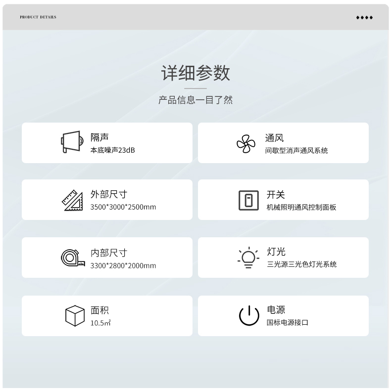 型號:L350 隔聲:室外環(huán)境噪聲≤55dB (A),室內本底噪聲≤23dB (A) 環(huán)保:甲醛釋放量≤0.4mg/L,滿足《室內裝飾裝修材料及人造板棉制品中甲醛釋放量》 參考標準: JJF 1191-2019《測聽室聲學特性校準規(guī)范》 GB 3096-2022《聲環(huán)境質量標準》 GB 50325-2020《民用建筑工程室內環(huán)境污染控制標準》 適用范圍:純音測聽、言語測聽、兒童聽覺言語檢測評估