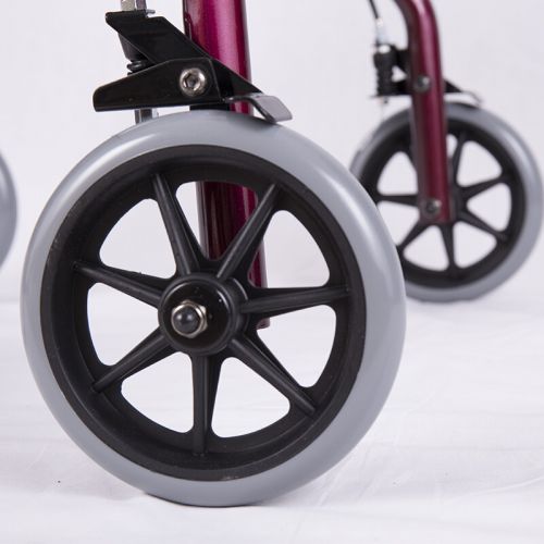 產(chǎn)品采用高強度鋁合金材質(zhì),支撐力強,堅固輕便。設計符合人體工學原理,手感舒適。握把手駐雙剎,使用更安全。握把調(diào)節(jié)處采用三角形旋鈕設計,更加穩(wěn)定,不費力。海綿握把,久握不累,舒適,防滑,抗震。鋁合金主題結構鏈接支撐,更加穩(wěn)定。前輪裝置為優(yōu)質(zhì)萬向輪,360度可旋轉車軸。后輪裝置多功能剎車,固定式剎車和手動式剎車。舒適坐墊,便攜靠背。