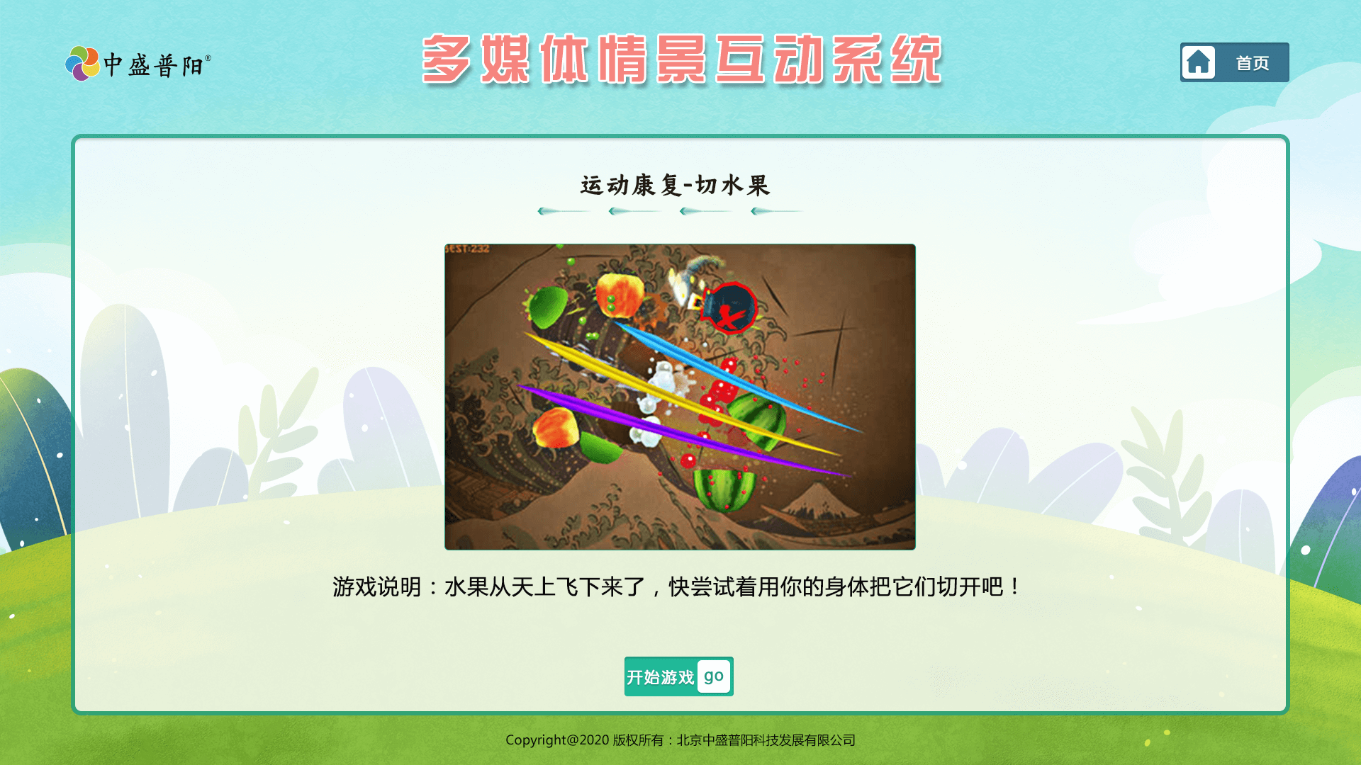 多媒體情景互動系統(tǒng)通過互動游戲的形式引導學生進行訓練,激發(fā)學生的興趣。系統(tǒng)采用了先進的動作捕捉技術,系統(tǒng)可不借助任何輔助設備直接在地面成像,通過人體的肢體動作實現(xiàn)實時動作捕捉,進行情景互動訓練。 系統(tǒng)包括了運動康復、認知益智、情景體驗、趣味互動等八大類型,超過一百三十多個原創(chuàng)設計訓練游戲,如:城市煙花訓練游戲,當兒童在投影區(qū)行走時,系統(tǒng)捕捉兒童腳部動作,地面會出現(xiàn)絢麗的煙花。