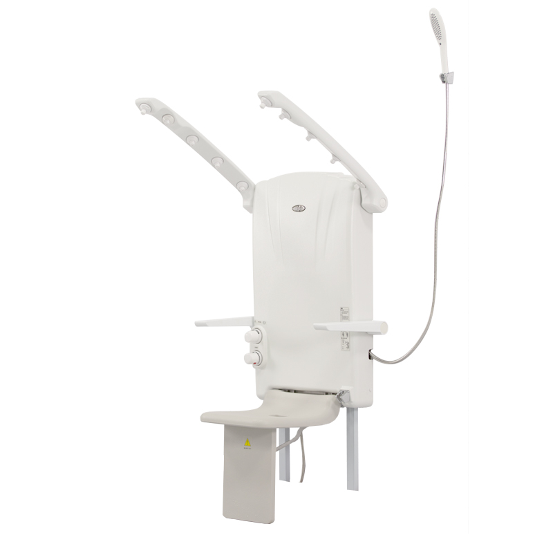 不銹鋼框架;恒溫、坐式、帶扶手、座位可折疊;80*90*180厘米