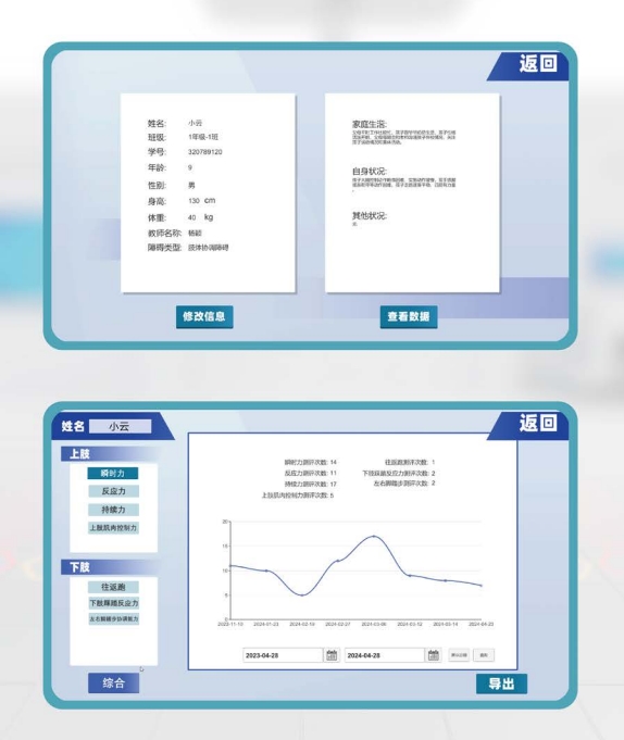 運(yùn)動(dòng)康復(fù)評(píng)估訓(xùn)練系統(tǒng)采用自適應(yīng)學(xué)習(xí)引擎、數(shù)據(jù)分析引擎等核心技術(shù),配合可觸式傳感器及柔性透光材質(zhì),營造科學(xué)、安全、真實(shí)的訓(xùn)練場(chǎng)景,對(duì)兒童的肢體運(yùn)動(dòng)能力進(jìn)行全面評(píng)估與針對(duì)性訓(xùn)練。 系統(tǒng)內(nèi)置評(píng)估功能,康復(fù)師可針對(duì)每一名兒童進(jìn)行系統(tǒng)評(píng)估,例如瞬時(shí)力、持續(xù)力、反應(yīng)速度、耐力、上下肢肌力平衡性、協(xié)調(diào)性等進(jìn)行科學(xué)的評(píng)估。大數(shù)據(jù)引擎可對(duì)評(píng)估結(jié)果進(jìn)行對(duì)比與分析,自動(dòng)生成評(píng)估報(bào)告,各項(xiàng)功能指標(biāo)數(shù)據(jù)化、圖形化,一目了然