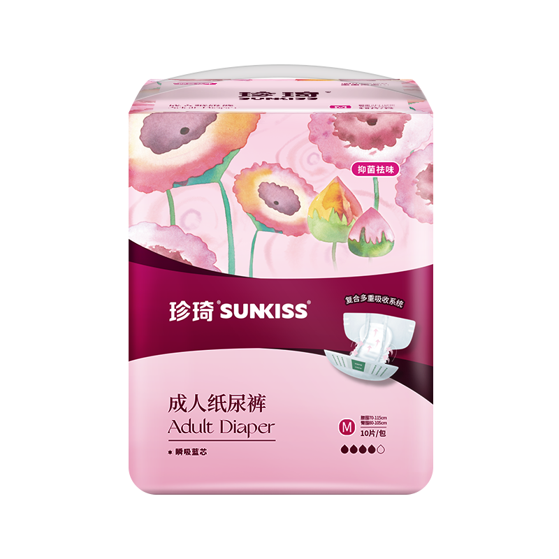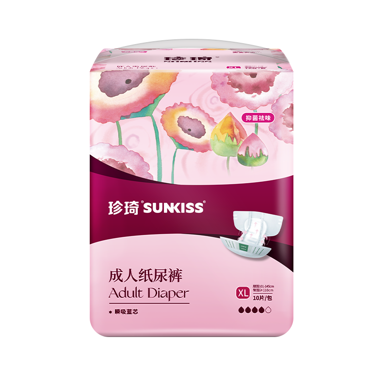 珍琦花樣倍護(hù)紙尿褲 ① 復(fù)合多重吸收系統(tǒng): 采用了“瞬吸藍(lán)芯”技術(shù),使液體快速擴(kuò)散低回滲,保持皮膚干爽舒適; ② 高效吸收芯體:進(jìn)口優(yōu)質(zhì)絨毛漿搭配高鎖水性SAP,雙芯速吸,更高吸收量,更強(qiáng)鎖水性,干爽舒適低回滲 ③ 貼身腿部橡筋:不勒肉,無(wú)來(lái)縛,加倍防側(cè)漏保護(hù),減少打擾病者的頻次和護(hù)理人員換洗的工作量 ④防漏PE底膜:采用全新料PE膜,防潮不悶熱,柔軟不透水,有效防止液體滲漏. 適用于臥床失禁老人