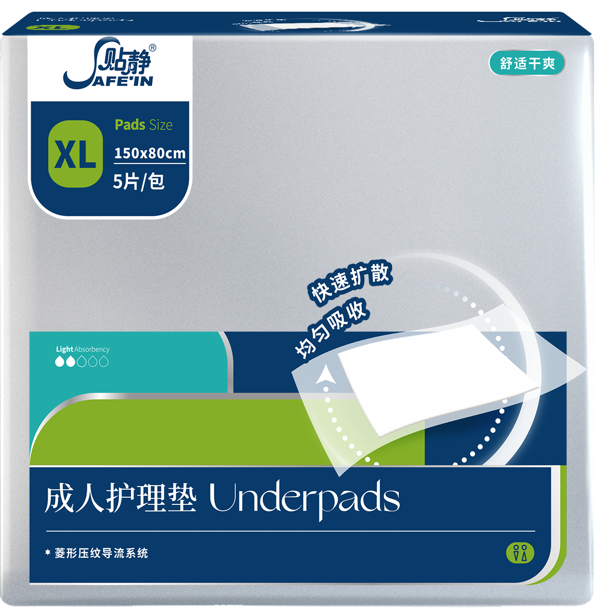 ① 舒爽瞬吸芯體:美國(guó)進(jìn)口木漿搭配高吸水SAP,瞬吸鎖水低回滲 ② 菱形導(dǎo)流系統(tǒng):菱形壓紋導(dǎo)流設(shè)計(jì),快速擴(kuò)散,持久干爽 ③ 防漏PE底膜:防漏隔污,遠(yuǎn)離床單換洗煩惱 ④ 柔軟親膚表層:采用優(yōu)質(zhì)親水無(wú)紡布面層,觸感舒適,減輕肌膚摩擦負(fù)擔(dān) 產(chǎn)品結(jié)構(gòu):親膚無(wú)紡布面層、木漿+SAP芯體層、衛(wèi)生紙吸收層、PE底膜