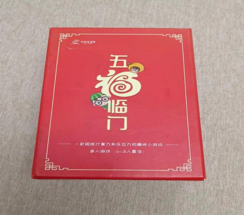 五福臨門是一款團(tuán)體游戲,通過(guò)五福臨門,能鍛煉老年人短期記憶力,鍛煉反應(yīng)能力,同時(shí)在團(tuán)隊(duì)中增強(qiáng)合作意識(shí),增進(jìn)彼此的友誼?;顒?dòng)建議選擇寬敞明亮的室內(nèi),需要有桌椅,將現(xiàn)場(chǎng)人員分成小組,每組5-8人。首先老師洗牌并均分卡牌給每位參與者,分完后每位按順序出牌,當(dāng)出現(xiàn)本張紙牌與上一張紙牌數(shù)字之和為5時(shí),所有人去搶鈴,速度最快者得到卡牌,桌上所有卡牌歸最快按鈴者;每一位用完手中的牌,游戲結(jié)束;搶拿卡牌最多者為贏