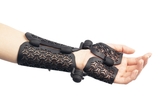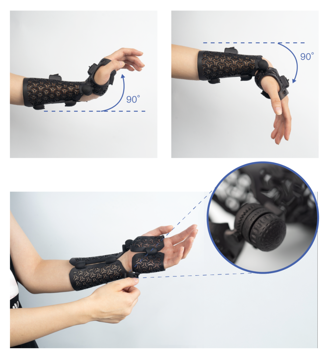 基于對腕關節(jié)骨折及周圍骨折固定、橈神經(jīng)等上肢周圍神經(jīng)損傷導致腕屈伸功能障礙等與康復原理的深入研究和理解,黑格研發(fā)了輕巧靈活的集治療與康復功能于一體的3D打印矯形器。