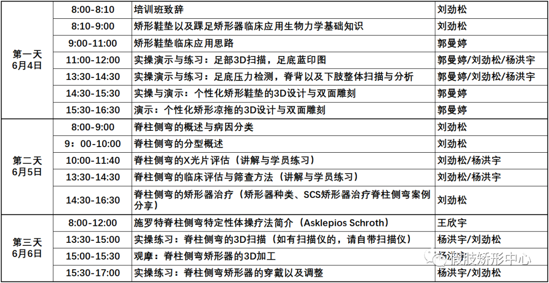 本次培訓(xùn)班以臨床實(shí)用為根本,理論與實(shí)際操作練習(xí)相結(jié)合,分享假肢矯形中心寶貴的臨床經(jīng)驗(yàn),學(xué)員可掌握脊柱側(cè)彎評(píng)估、篩查、掃描、矯形器穿戴以及調(diào)整、踝足生物力學(xué)基本知識(shí)、足部評(píng)估、足部掃描等方法,了解施羅特方法對(duì)脊柱側(cè)彎的治療作用、脊柱側(cè)彎矯形器的3D加工、矯形鞋墊的3D設(shè)計(jì)以及加工。迅速開(kāi)展相關(guān)的專(zhuān)業(yè)工作,服務(wù)當(dāng)?shù)鼗颊摺?/span>