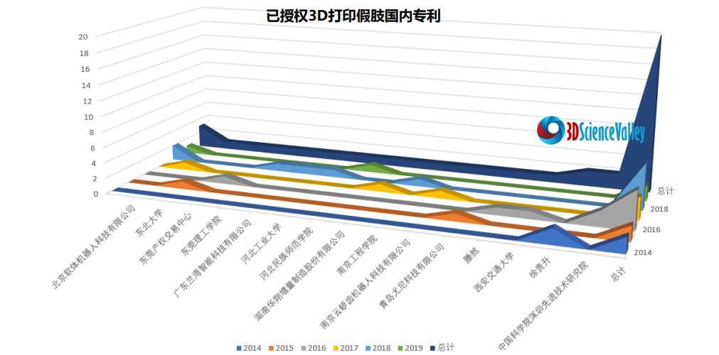 3D打印假肢國內(nèi)專利50個(gè),其中已授權(quán)專利為20個(gè)。