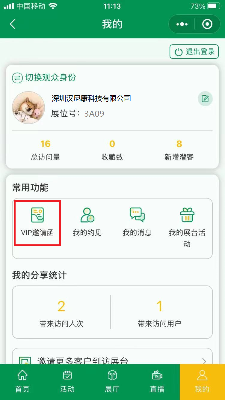 3. 填寫完以上信息后,在小程序“網(wǎng)上展廳”選擇【展商登錄】,登錄后點(diǎn)擊【VIP邀請函】,即可生成貴司的專屬邀請函。