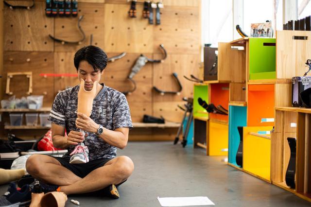 在日本,“假肢裝具師”不僅僅幫助使用者穿戴,還負(fù)責(zé)制作假肢。 資料圖沖野敦郎出生于兵庫(kù)縣。他對(duì)制作假肢的興趣起始于2000年。那一年正值悉尼奧運(yùn)會(huì)舉辦,還在上大學(xué)的他偶然間在電視上看到一場(chǎng)殘奧會(huì)的短跑比賽。片段中,穿著假肢的短跑運(yùn)動(dòng)員風(fēng)馳電掣般地跑過(guò)賽道,給他留下了深刻的印象。“上面是人類的肉體,下面是機(jī)械腿,看到的瞬間,覺(jué)得好帥!”,沖野先生接受澎湃新聞采訪時(shí)回憶道。而那一幕的沖擊,也徹底改變了沖野先生的人生。