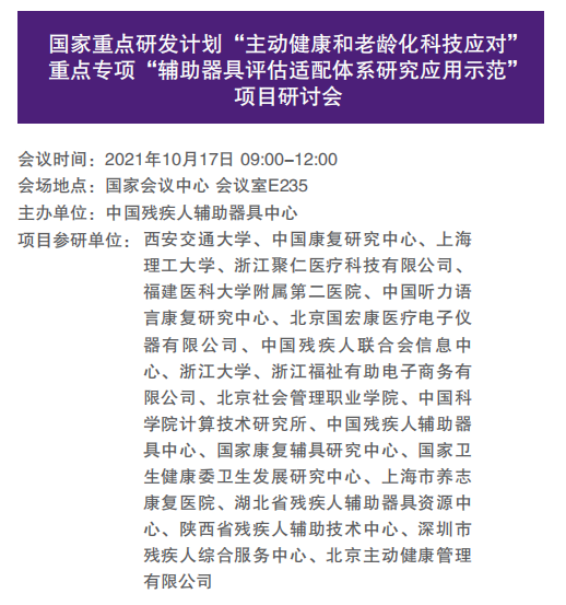國(guó)家重點(diǎn)研發(fā)計(jì)劃“主動(dòng)健康和老齡化科技應(yīng)對(duì)”重點(diǎn)專項(xiàng)“輔助器具評(píng)估適配體系研究應(yīng)用示范”項(xiàng)目研討會(huì) |