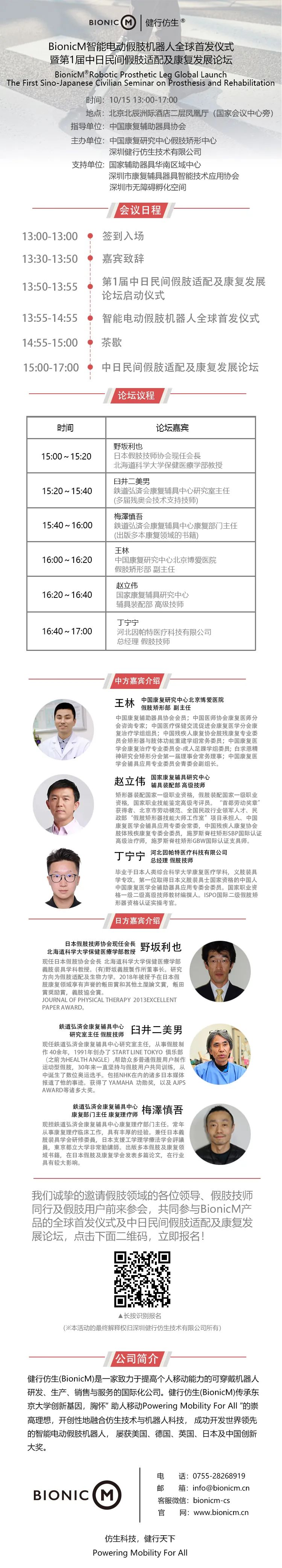 值此喜慶之際,BionicM(健行仿生)將參展2021中國(guó)國(guó)際福祉博覽會(huì),智能電動(dòng)假肢機(jī)器人全球首次正式發(fā)布,同時(shí),BionicM將與福祉博覽會(huì)同期舉辦中日第1屆民間假肢適配及康復(fù)發(fā)展論壇,通過(guò)中日兩國(guó)假肢及康復(fù)領(lǐng)域權(quán)威專家之間的對(duì)話、交流、信息共享,促進(jìn)兩個(gè)國(guó)家在假肢及康復(fù)領(lǐng)域的交流和合作。我們真誠(chéng)邀請(qǐng)您一起見(jiàn)證全球首發(fā)的智造之光、及首屆中日民間假肢適配與康復(fù)發(fā)展的論壇盛舉!