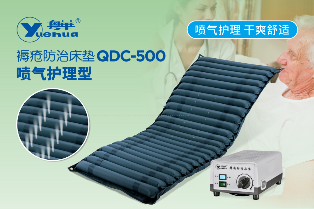 粵華波動噴氣型褥瘡防治床墊QDC-500——適用于長期臥床病人護理。依靠波動功能有效分散病人與床墊接觸部位的壓力,預(yù)防和緩解褥瘡。床墊整床采用優(yōu)質(zhì)尼龍PCV制成,并帶有多個微小氣孔,使用時有氣體噴出,保持背部皮膚的干爽舒適。保證床墊的耐磨舒適的同時,保證了床墊的透氣性。是集多種功能為一體的綜合型長期護理床墊。