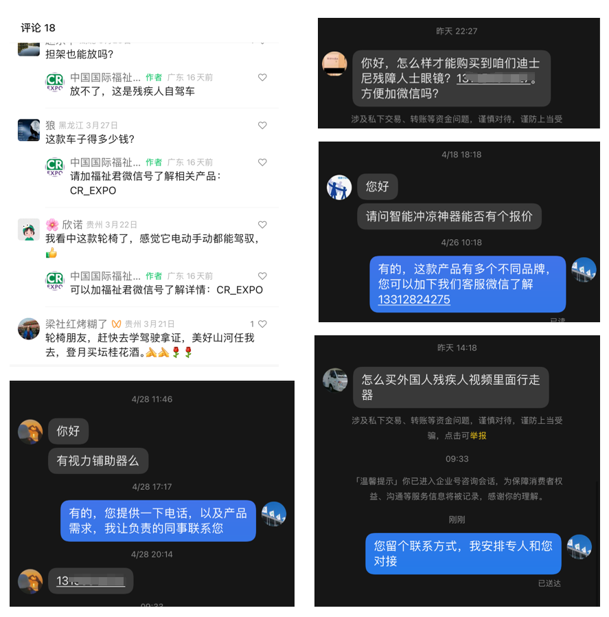 產(chǎn)品案例:近期,折疊輪椅、福祉車等新產(chǎn)品在福祉視頻平臺(tái)發(fā)布后,產(chǎn)品類目的播放量直線提升,討論度火熱,短時(shí)間內(nèi)收獲20+來自B端、C端的詢價(jià)。
