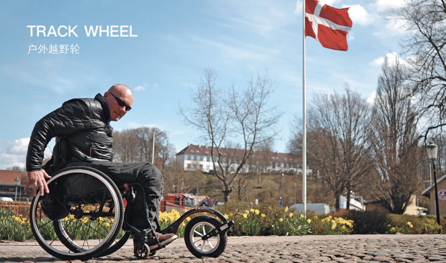 戶外冒險的理想選擇——Track wheel可以把您的輪椅變成可操作的三輪車,體驗全新的速度和自由。它重量輕,易安裝,易操作,方便攜帶。動力輔助 – 更大的前輪使得行駛摩擦力減小,這讓輪椅車更加容易行駛通過粗糙或者非常規(guī)的戶外路面。