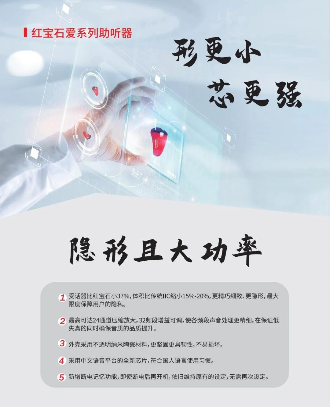 覆蓋全范圍聽力損失需求(134dB),搭載降噪、方向性語言增強、環(huán)境識別及雙麥克風(fēng)技術(shù),幫助用戶輕松捕捉并分辨語音。搭載升級版的自適應(yīng)聲反饋消除技術(shù),消除惱人的噪聲,聽聲更清晰,輕松遠離嘯叫;清晰音質(zhì)與多拐點技術(shù)相結(jié)合,音質(zhì)更加飽滿豐富。體積大、操作方便、選配靈活,是老年人首選助聽器。