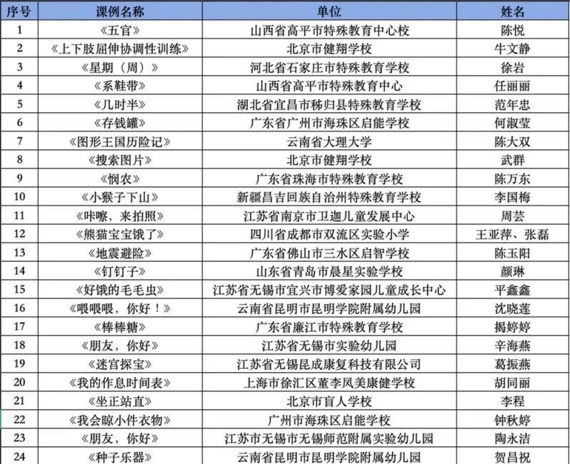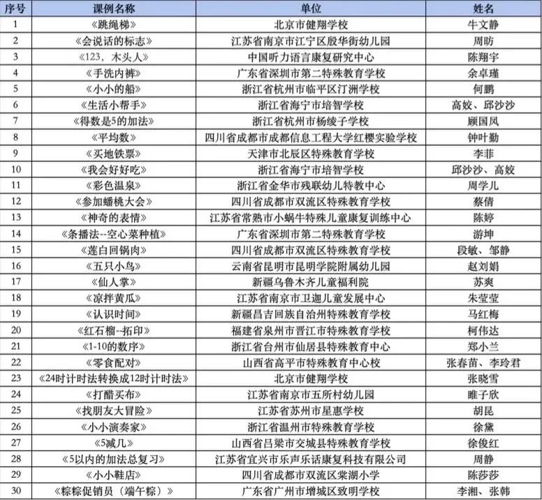 公布第一屆孤獨(dú)癥教育教學(xué)征集優(yōu)秀組織單位,優(yōu)秀、創(chuàng)新和鼓勵(lì)論文名單;公布第一屆孤獨(dú)癥教學(xué)案例優(yōu)秀組織單位,優(yōu)秀、創(chuàng)新和鼓勵(lì)課例名單