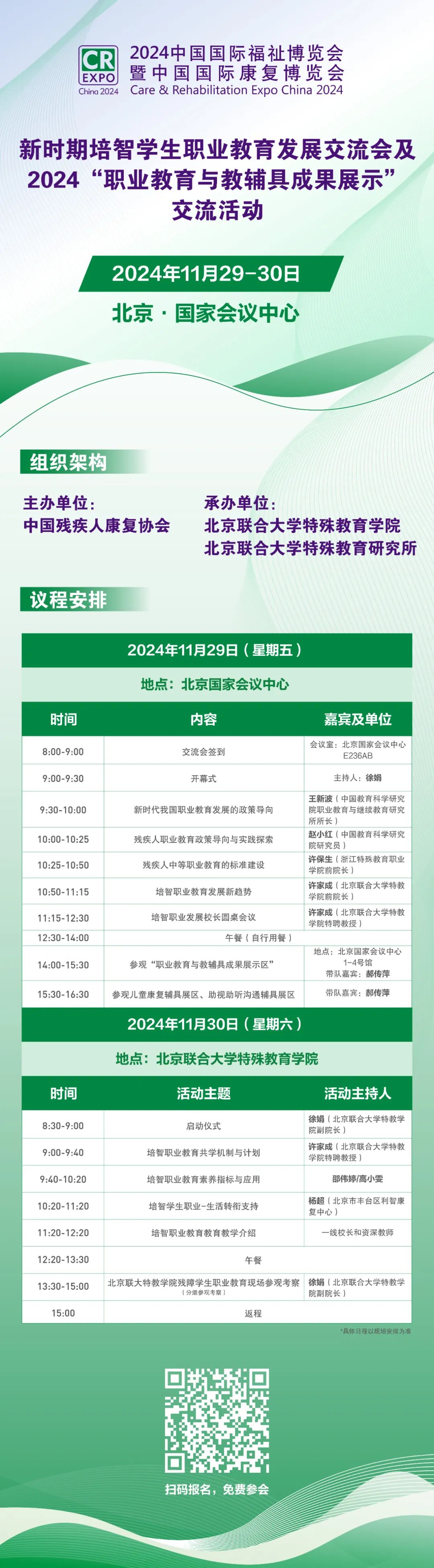 展會(huì)同期將舉辦新時(shí)期培智學(xué)生職業(yè)教育發(fā)展交流會(huì)