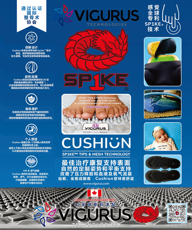 Vigurus 的 Sp1ke® Tips 和 Mesh 仿生結構科學提供卓越的緩沖舒適性和壓力分布。對于個人健康和健身以及移動產品,Sp1ke® 在人們坐著、站著、跪著或躺著的任何地方都能無與倫比地增強血液/氧氣流動、姿勢、本體感覺和體感刺激。