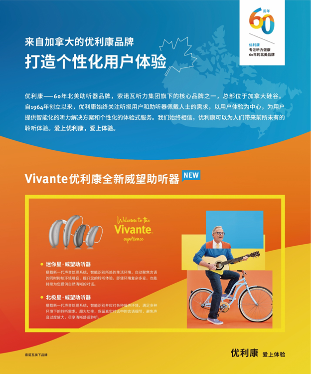 優(yōu)利康(Unitron)專業(yè)助聽器品牌,隸屬全球領先的聽力集團sonova公司,致力于為消費者提供專業(yè)的驗配處方助聽器產品。優(yōu)利康于1964年成立,總部位于加拿大滑鐵盧地區(qū)。60多年堅持致力于開發(fā)提供非凡個性化水平的聲學技術、產品和服務。我們所做的一切都是基于我們的信念,即人們應該對整個聽力保健體驗感到非常滿意。這就是為什么我們專注于為人們提供改善生活的聽力體驗,在聽力護理過程的每個階段為客戶提供支持。致力于追求卓越產品性能、設計和客戶滿意度的承諾感到自豪,旗下的威望系列助聽器采用最先進的聲學算法以及集團自研的專業(yè)助聽器芯片,已在中國市場同步供應。
