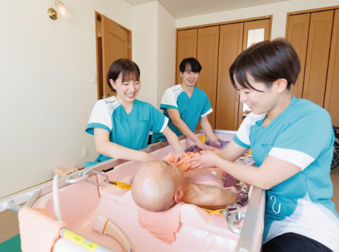 到宅沐浴工作人員3~4人(其中1人為護(hù)士)攜帶簡易浴缸上門提供特殊沐浴的服務(wù)。乘車拜訪客人的家,在家中安全空間內(nèi)組裝便攜式浴缸,給客人洗澡。