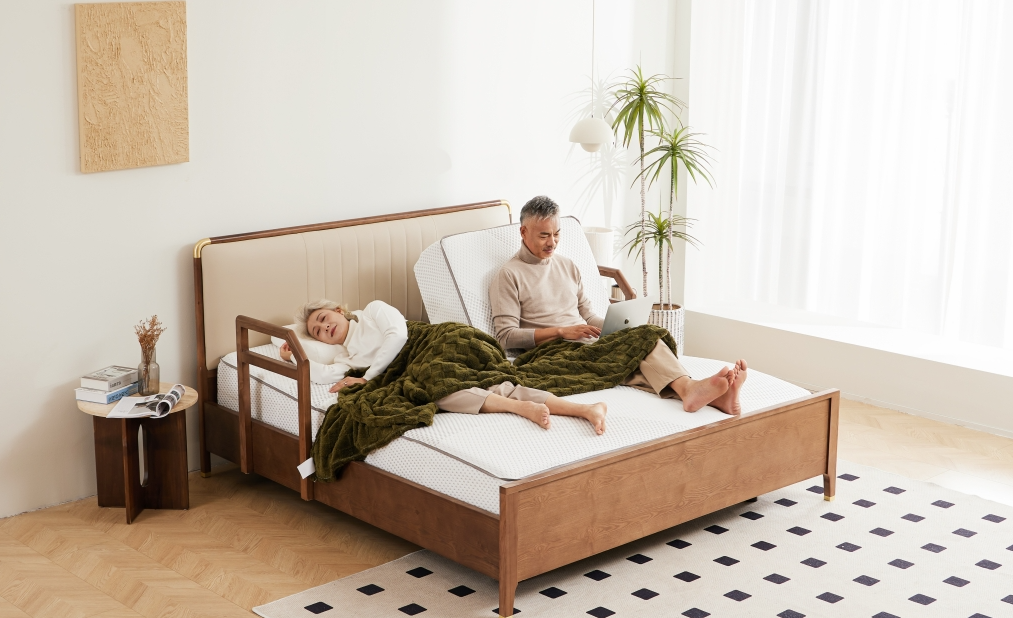 舒眠H921屬于適老化電動床,單人1.2米寬度尺寸,更加舒適。具備背部升降、腿部升降和整床升降,可滿足老人日常起居,方便上下床;以及后期處于護(hù)理階段,也方便家人照護(hù)。兩側(cè)扶手,便于抓握和儲物,后期根據(jù)老人需求,也可升級長護(hù)欄。