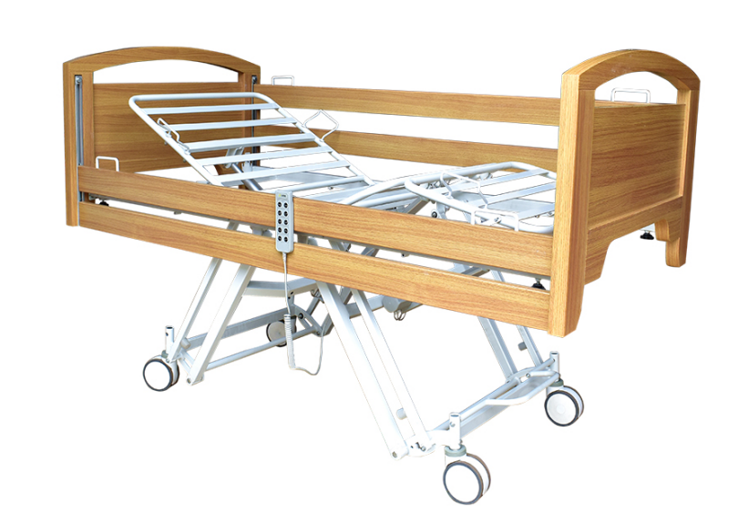 五功能電動護(hù)理床,功能齊全,全面護(hù)理臥床患者,有起背,抬腿,高度調(diào)節(jié),床體前傾和后傾這五種功能,使日常護(hù)理更為便捷。木質(zhì)床頭尾板和護(hù)欄設(shè)計體現(xiàn)家居化,更舒適,更溫馨,搭配靜音萬向腳輪使用更方便。