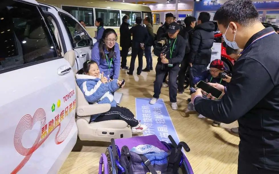 圖為觀眾在博覽會(huì)現(xiàn)場(chǎng)體驗(yàn)福祉車
